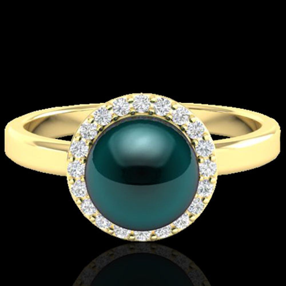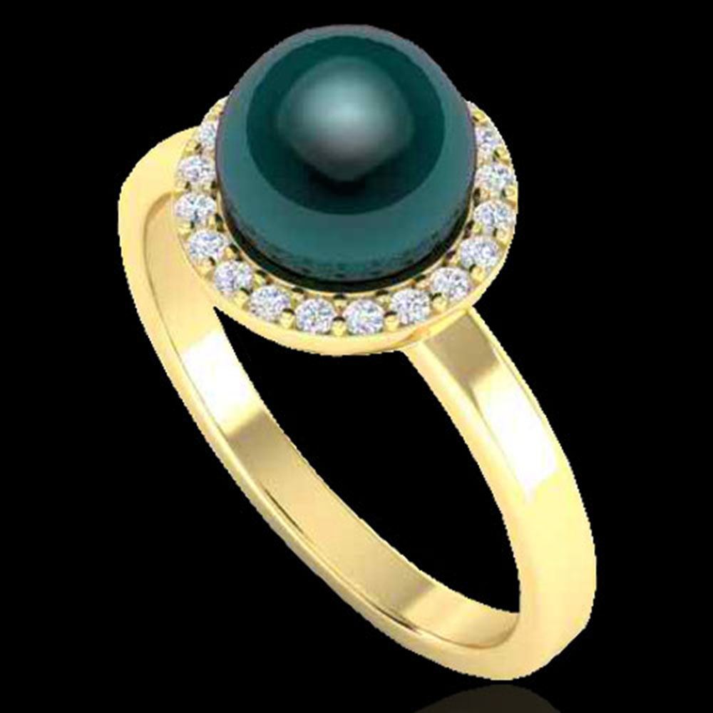 REF-41G6W - SKU: 21637 ---- 0.25 ctw Micro Pave VS/SI Diamond & Peacock Pearl Ring 18k Yellow Gold