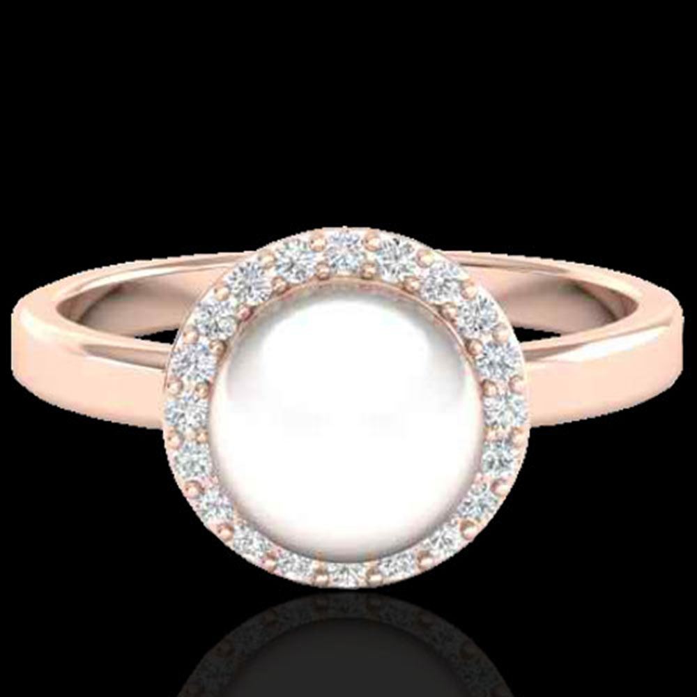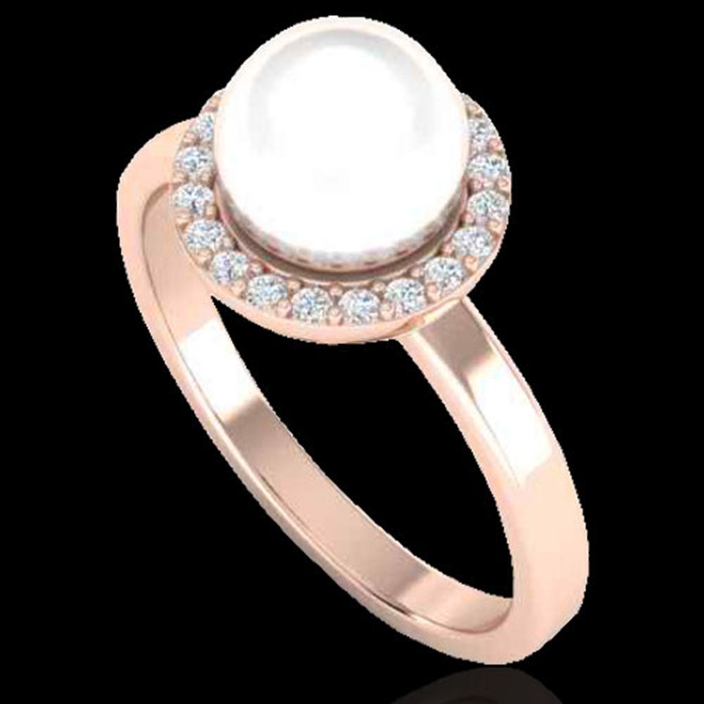REF-30N8F - SKU: 21645 ---- 0.25 ctw Micro Pave VS/SI Diamond & White Pearl Ring 14k Rose Gold
