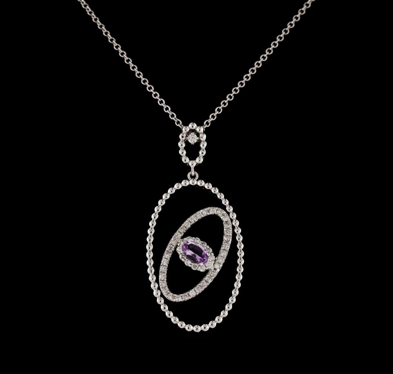 0.25 ctw Morganite and Diamond Pendant With Chain - 14KT White Gold