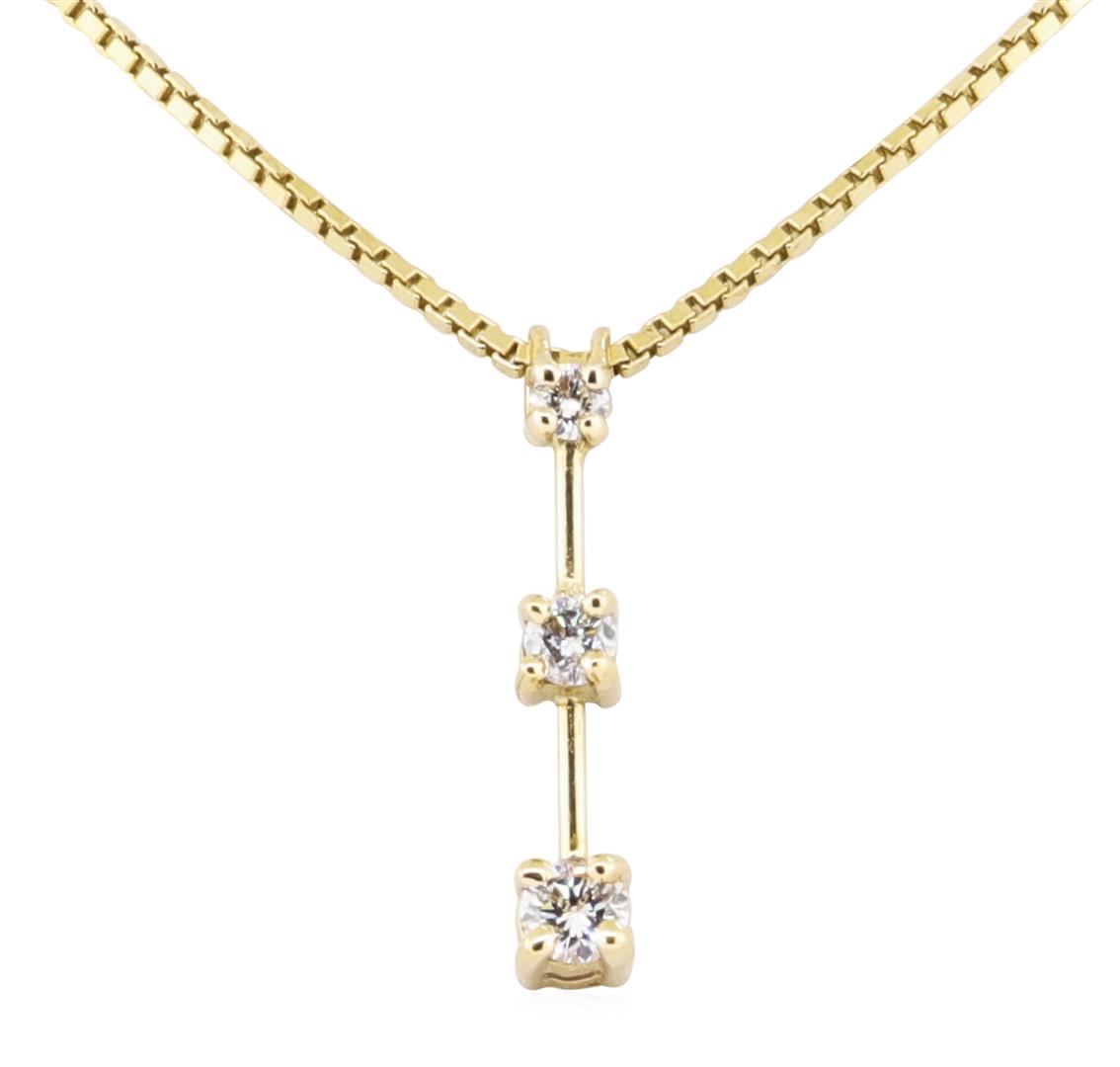 0.25 ctw Past, Present, Future Diamond Three Stone Pendant with Chain - 14KT Yel
