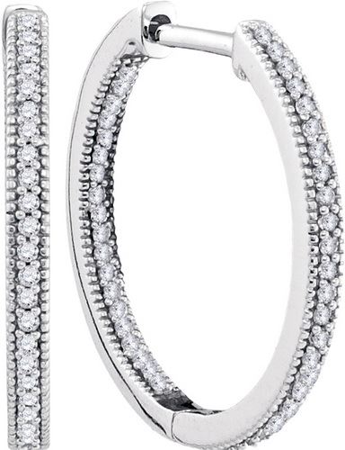 REF-29L9W ---- 0.25CT Diamond Hoops 10KT Earrings White Gold - SKU: 101115