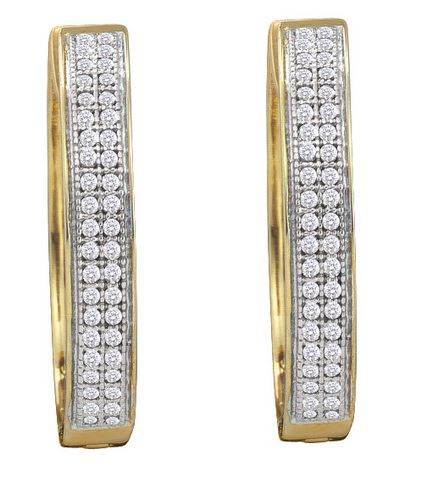 REF-26Y9W ---- 0.25CT Diamond Hoops 10KT Earrings Yellow Gold - SKU: GD 102342
