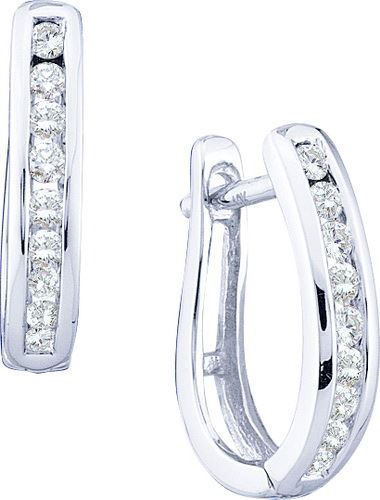 REF-35Z9R ---- 0.25CT Diamond Hoops 14KT Earrings White Gold - SKU: 48993
