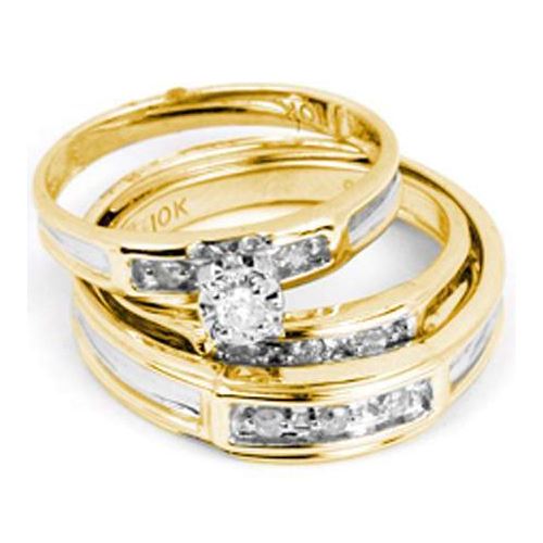 REF-37M5R ---- 0.25CT Diamond Trio Set 10KT Ring Yellow Gold - SKU: GD 18445