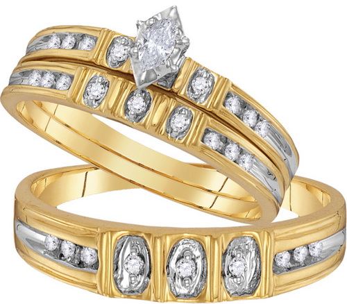 REF-55Z9R ---- 0.25CT Diamond Trio Set 10KT Ring Yellow Gold - SKU: 11286