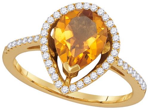 REF-64Y4W ---- 0.25CT Diamond and 1.25CT Citrine Anniversary 14KT Ring Yellow Gold - SKU: GD 104832