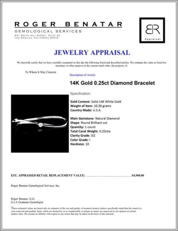 Regarding Appraised Jewelry and Loose Stones - Auctionfarm sends them out to a third party for Retail Replacement Value Appraisals, which are the most common. These types of evaluations are written for insurance needs. This would be the cost to replace the jewelry with an item of equal quality and kind, considered to be the current market price or the replacement value. This type of appraisal is done to protect you in the event of damage or loss of a valuable item. Our appraisals are conducted by independent 3rd Party appraisal firms that utilizes Certified GIA Gemologist. Appraisals should be used for verification of gemstone and/or metal weight, size, and grade only, not actual value. Appraisal value should be considered for insurance purposes only, not actual value, as price varies greatly from retail locations thru out the world. Items should not be purchased with the expectation to resell for appraisal price, or for profit.