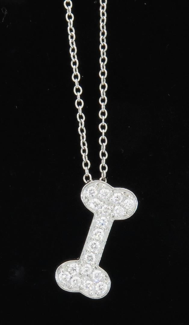 One tested platinum designer Birks diamond pendant. Containing: 18 Round Brilliant Cut Diamonds. Clarity: VS-SI, Color: F-G. Approximate total diamond weight: .25CTW. All diamonds are graded in the mounting unless otherwise stated. Weight of necklace: 4.2 grams, Size of chain: 18" long.