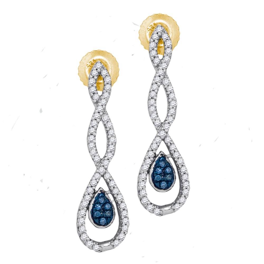 REF-26W9K- SKU: GD92023 ---- 0.26 CTW Blue Color Diamond Dangle Earrings 10KT Yellow Gold