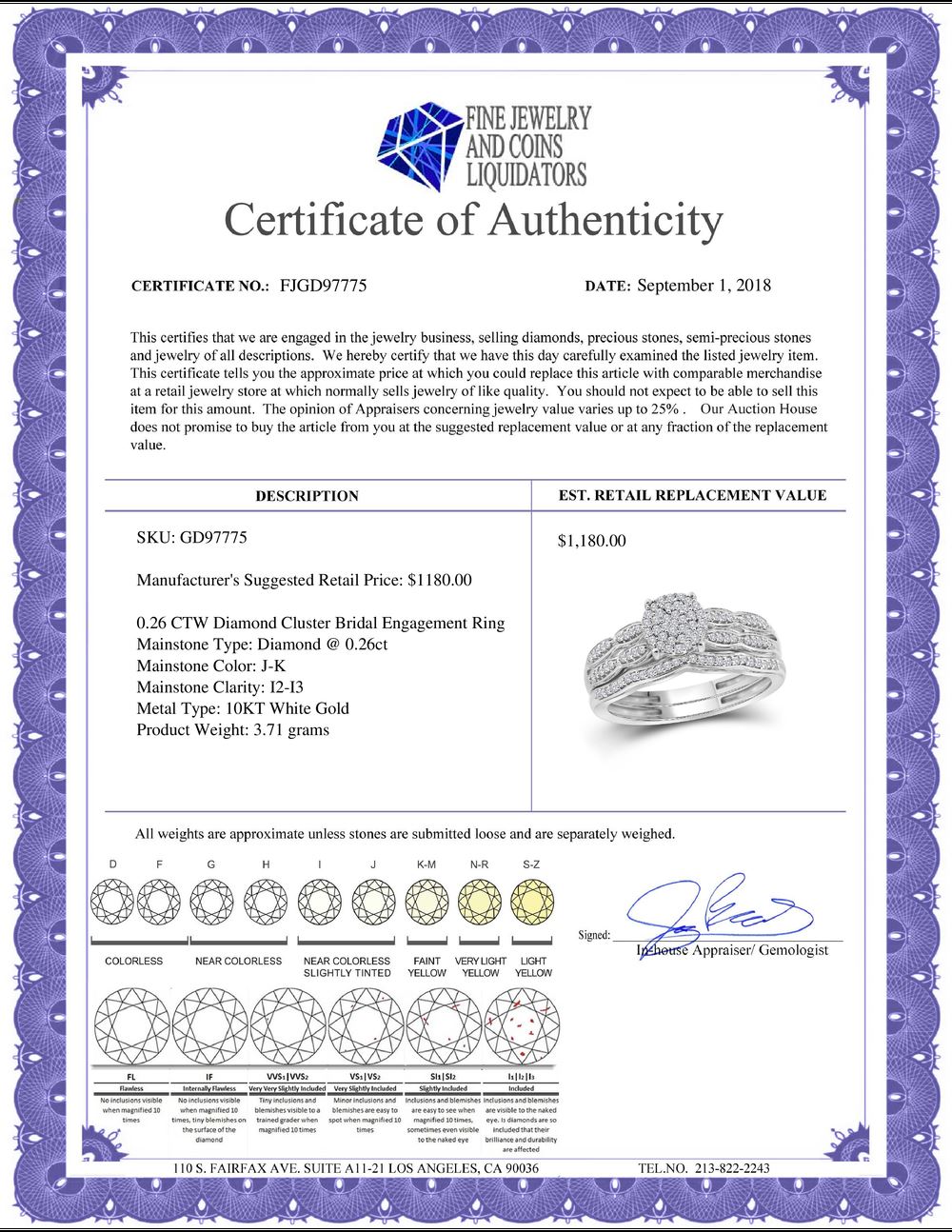 REF-30Y2X- SKU: GD97775 ---- 0.26 CTW Diamond Cluster Bridal Engagement Ring 10KT White Gold