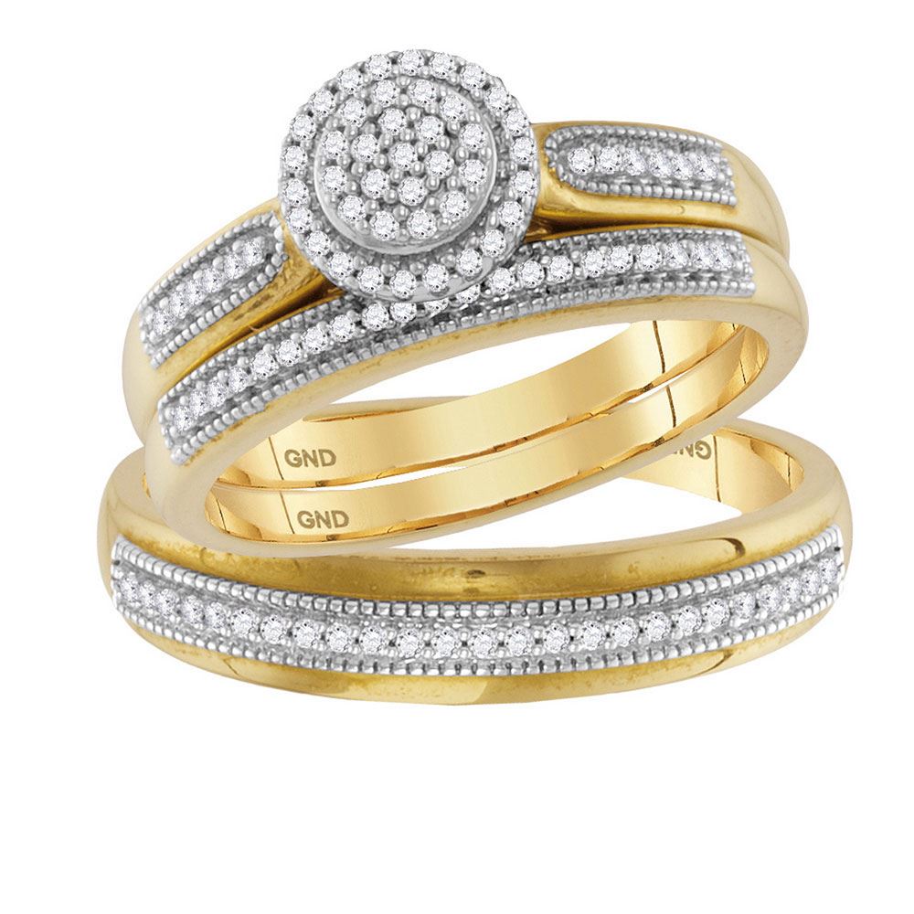 REF-44W9K- SKU: GD117733 ---- 0.26 CTW His & Hers Diamond Cluster Matching Bridal Ring 10KT Yellow Gold