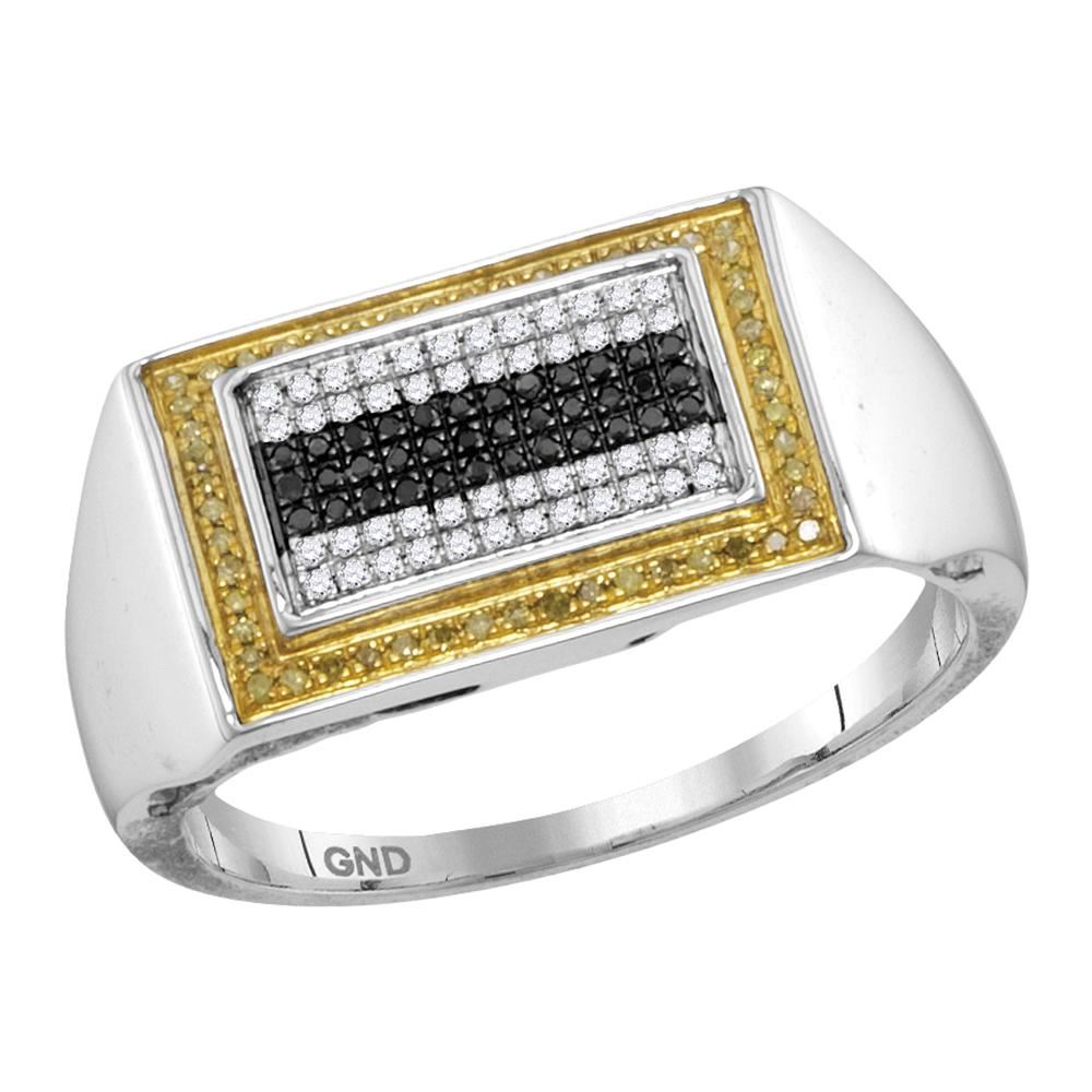REF-34F4N- SKU: GD67505 ---- 0.26 CTW Mens Black Yellow Color Diamond Rectangle Cluster Ring 10KT White Gold