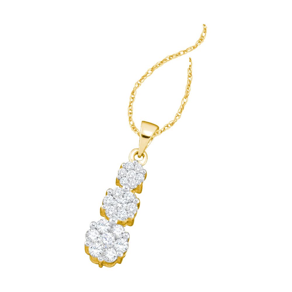 REF-40M2A ---- 0.26 CTW Natural Diamond Triple Trinity Cluster Pendant 14K Yellow Gold - SKU: GD14052