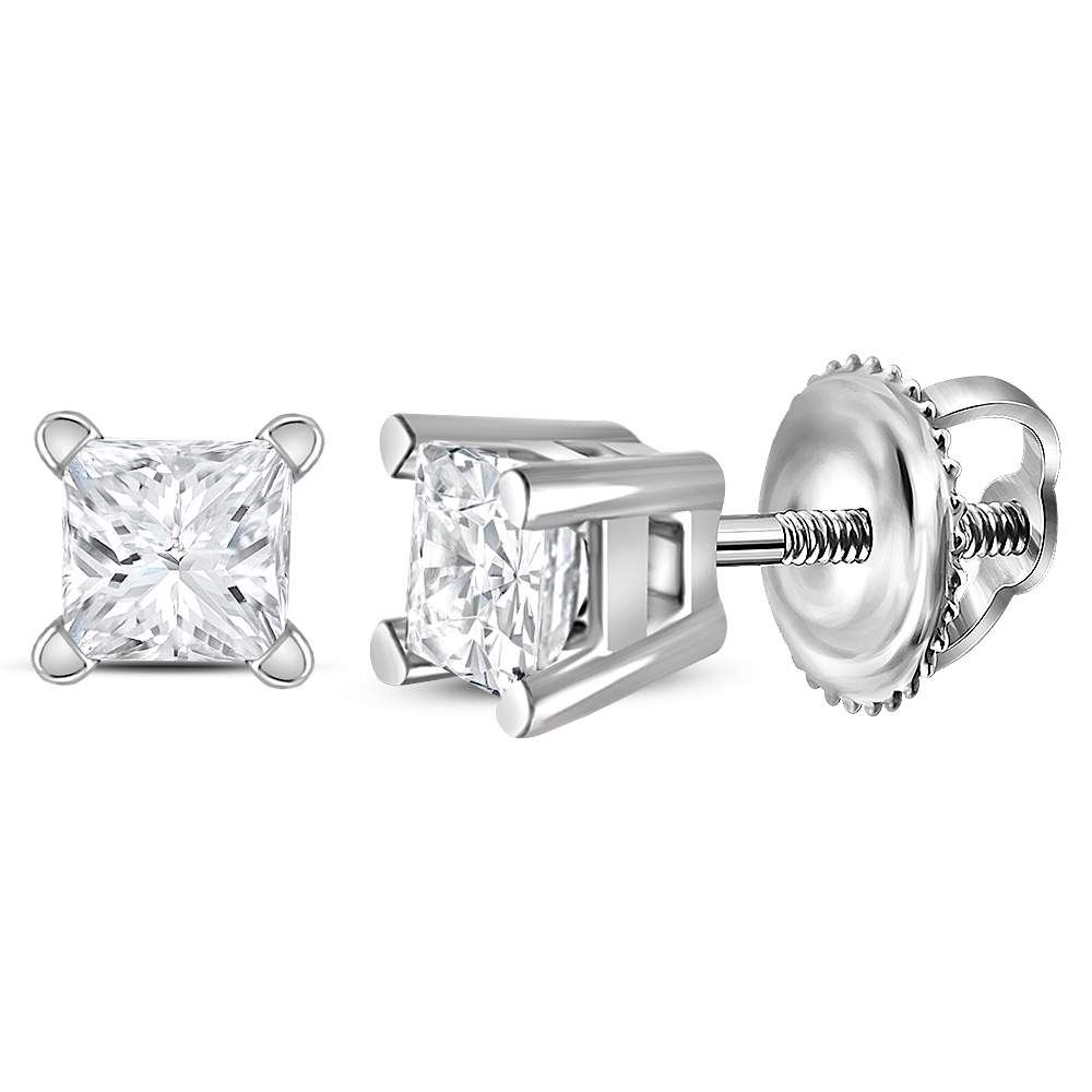 REF-25W4K- SKU: GD12017 ---- 0.26 CTW Princess Diamond Solitaire Stud Earrings 14KT White Gold