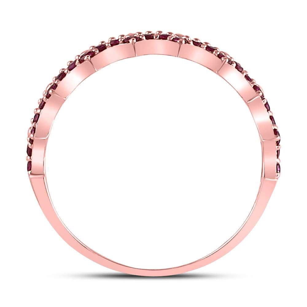 10kt Rose Gold Womens Round Ruby Scalloped Stackable Band Ring 1/4 Cttw
