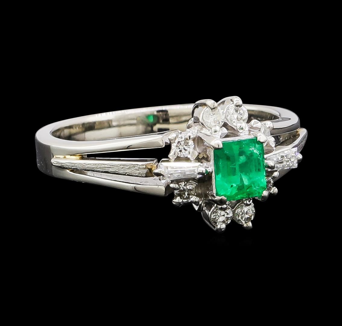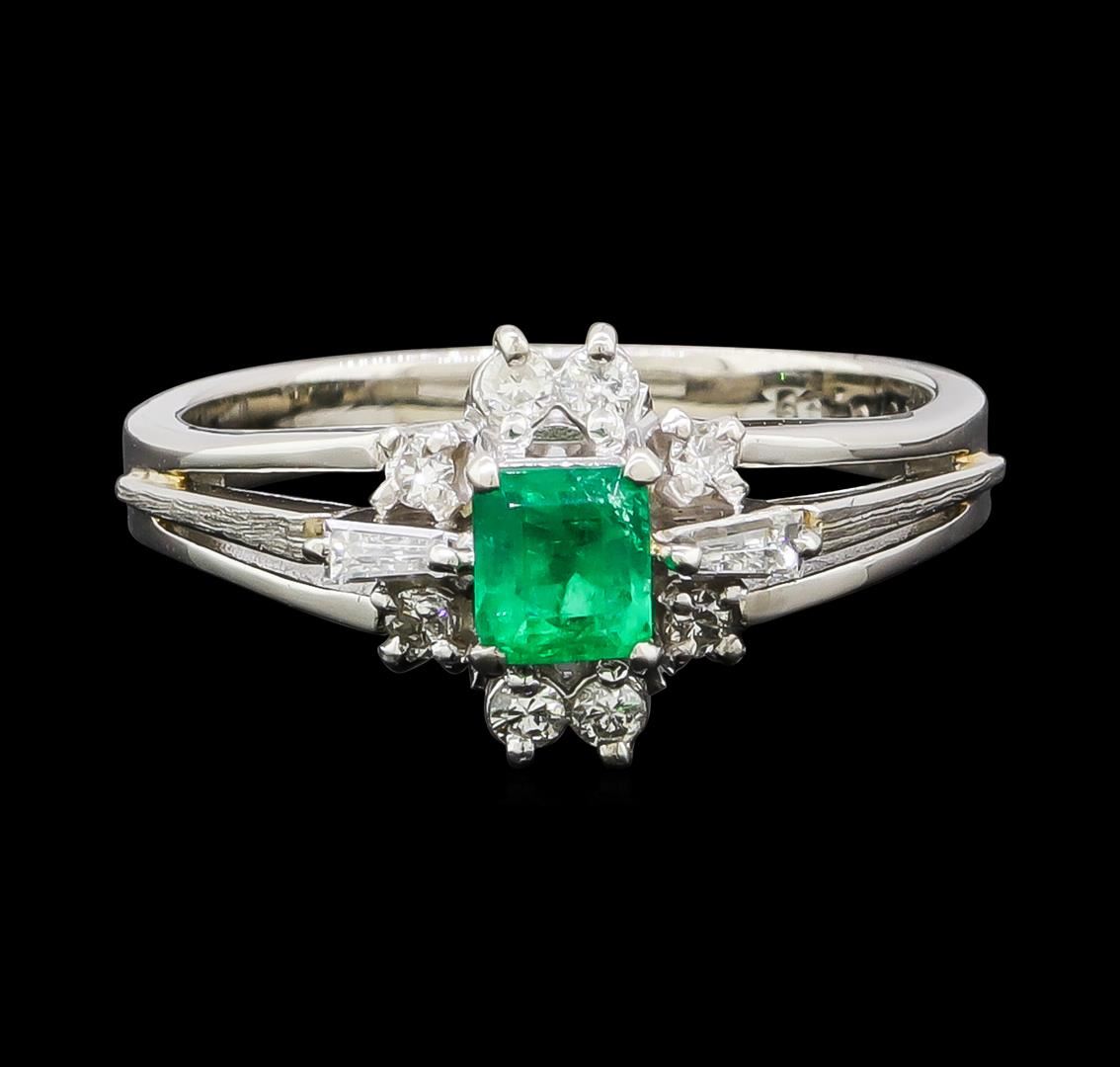 One ring featuring: Platinum containing Emerald with a total weight of 0.26ct and Diamonds with a total weight of 0.19ct. Total Weight of Ring: 4.9 grams.