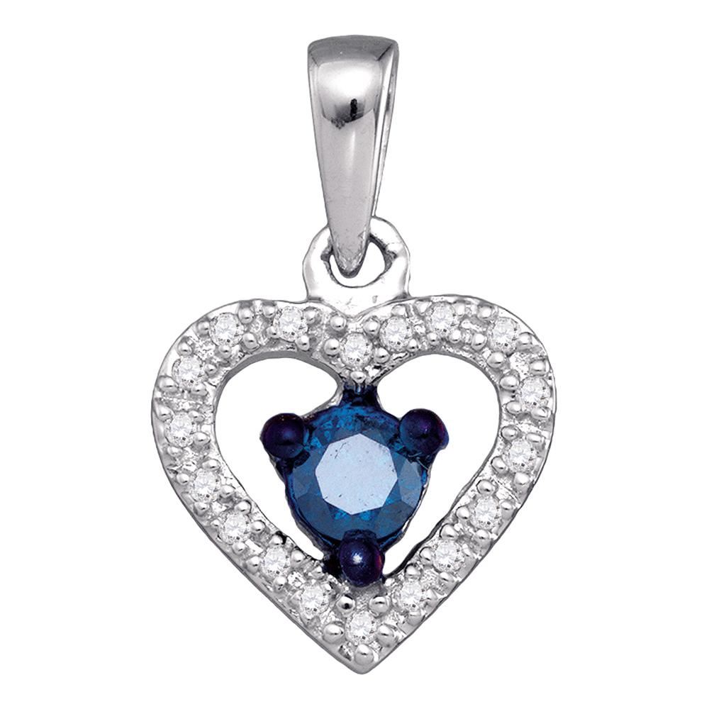 REF-18X2Y- SKU: GD75039 ---- 0.27 CTW Blue Color Diamond Solitaire Heart Pendant 10KT White Gold
