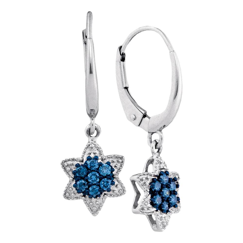 REF-22Y4X- SKU: GD89180 ---- 0.27 CTW Blue Color Diamond Star Cluster Dangle Earrings 10KT White Gold
