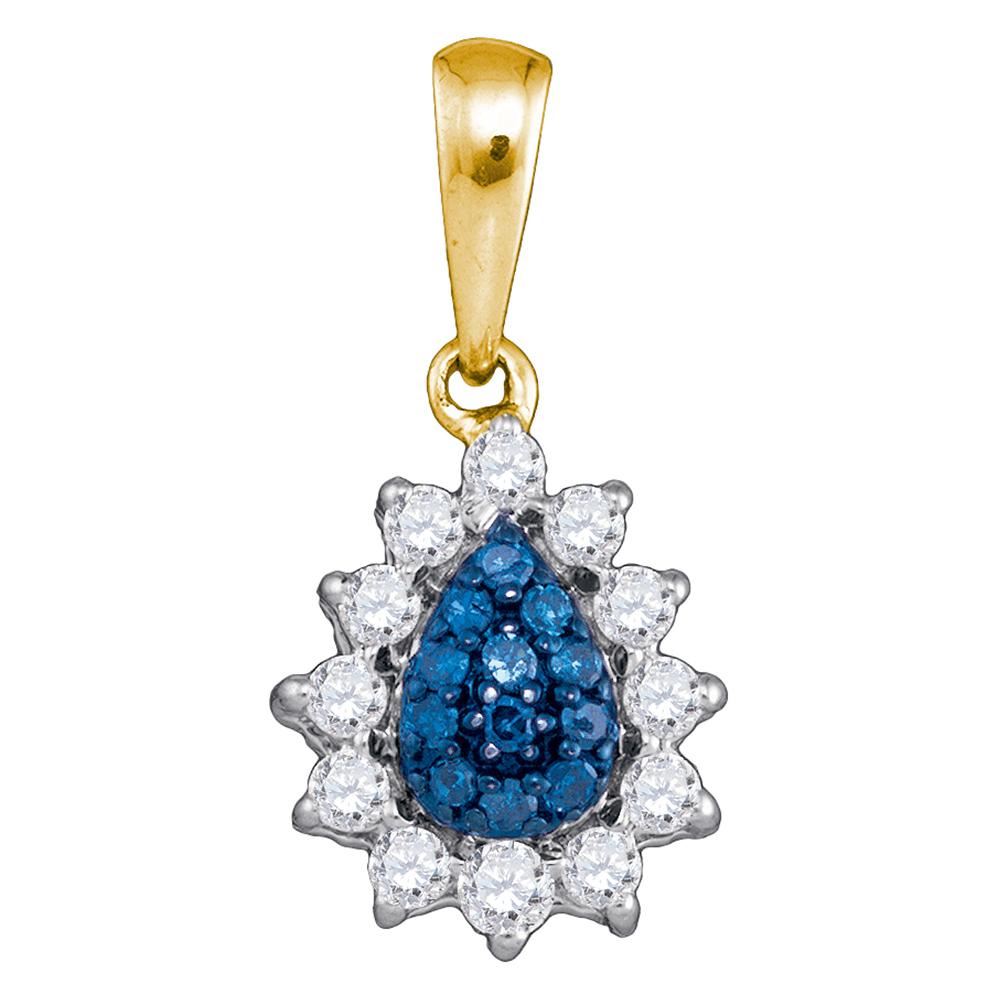 REF-16M4H- SKU: GD86467 ---- 0.27 CTW Blue Color Diamond Teardrop Cluster Pendant 10KT Yellow Gold