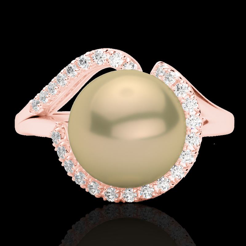 REF-50A8X -22619 ---- 0.27 CTW VS/SI Diamond & Golden Pearl Designer Ring 14K Rose Gold ---- Luxury Designer Brand Ring Appraised at $3,650 Certificate Number US22619 14k Rose gold, Ring Size is 6.5, Ring measuring approx. 3/4" X 1/2", weighing in total approx. 3.6 grams. Made in the USA and is stamped 14k, Main stone 1.5 carat total weight containing 1 pieces of High Luster color with AAA quality Golden shape cut Pearl , Stone #2 0.27 carat total weight containing 27 pieces of H-I color with VS/SI quality Round shape cut Diamond