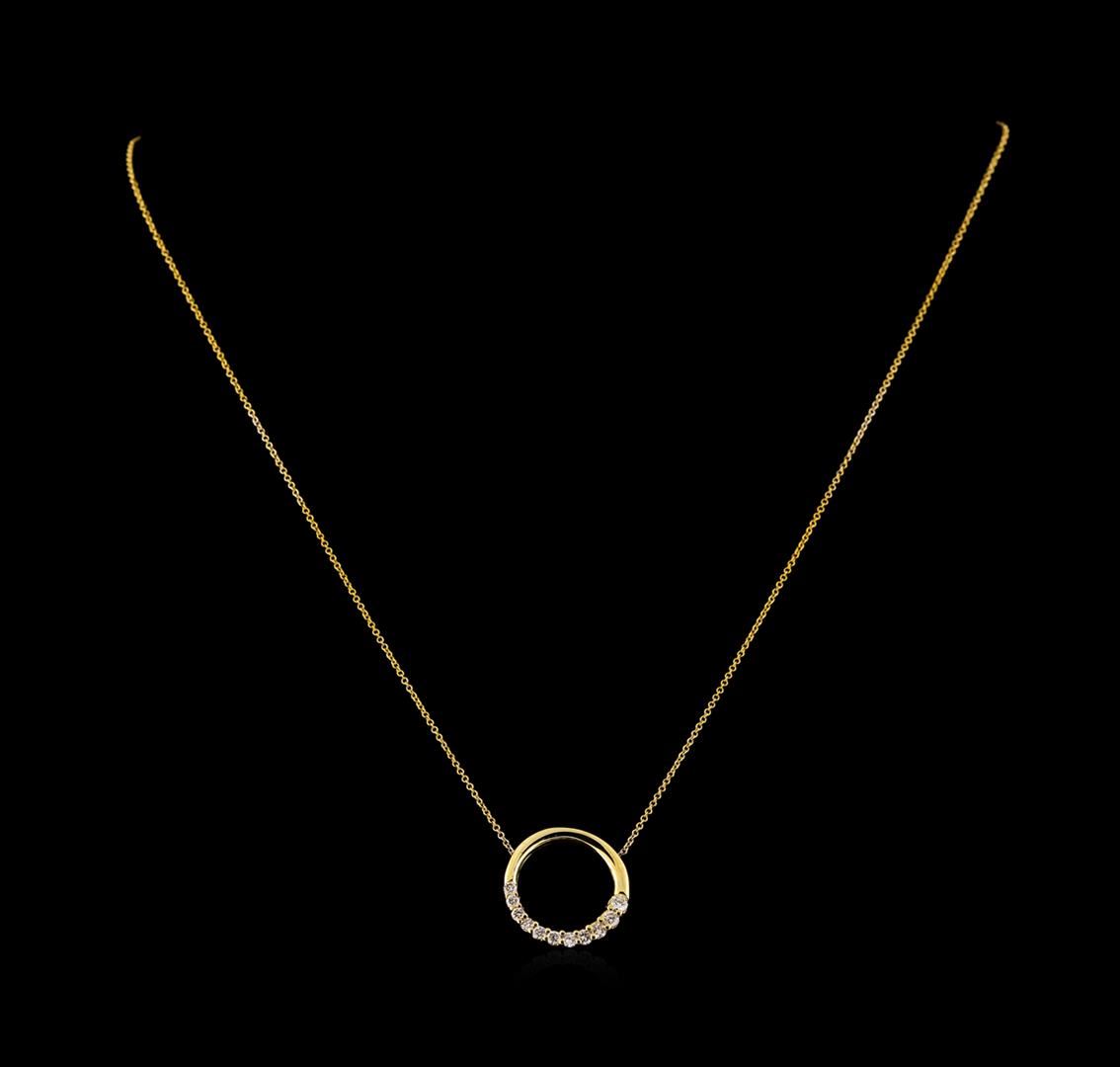 One pendant with chain: 14KT yellow gold weighing 2.40 gm containing diamonds with a total weight of 0.27ctw.