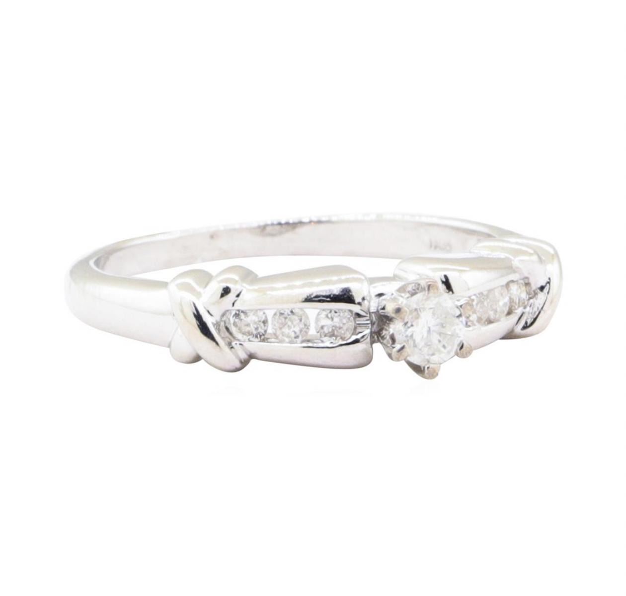 One engagement ring featuring: 10KT white gold weighing 2.7 grams containing diamonds weighing 0.27ctw.