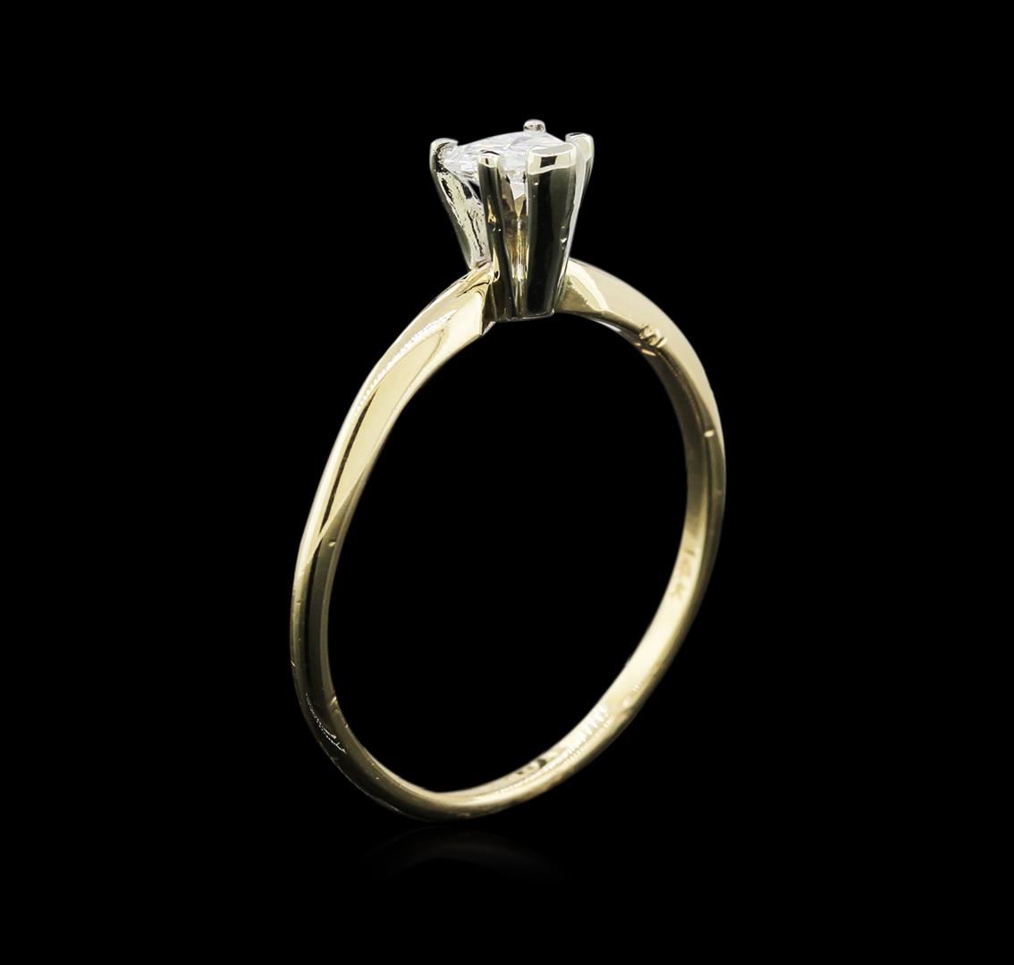 One electronically tested 14KT yellow gold lady's combination cast & assembled solitaire engagement ring with a bright polish finish. The featured lady's ring has a shank measuring 1.46 millimeters in width. Identified with markings of "14K". Condition is new, good workmanship. Containing: One prong set heart shaped cut diamond, measuring 4.20 x 4.70 x 2.35mm (depth est.) approximate weight of 0.27ct. Graded in the setting. Clarity: I-1. Color: I. Cut Good. Total Weight of Diamonds 0.27ct. Total Weight of Ring 1.70gm. GAS Appraised at $985.00.