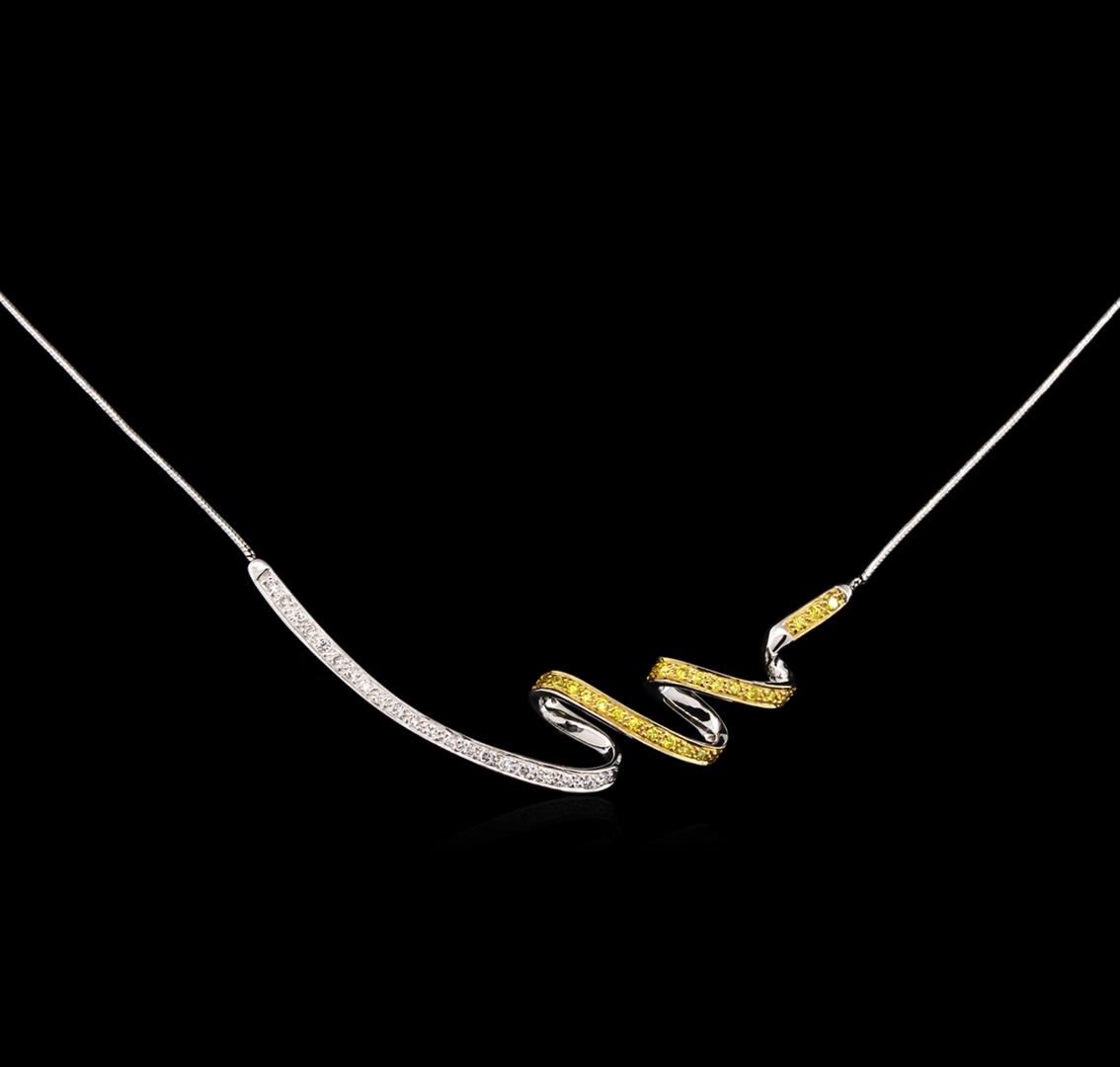 One electronically tested 14KT white gold lady's cast fashion necklace with a lobster claw clasp with a bright polish finish. The featured lady's necklace measures 17.5" in length Identified with markings of "14K". Condition is new, good workmanship. Containing: Twenty-One bead set round brilliant cut diamonds, measuring 1.15 - 1.10 x 0.73mm (depth est.) approximate. Total Weight of 21 Stones = 0.12ct. Graded in the setting. Clarity: VS-2 to SI-1. Color: G - I. Cut Good Twenty-Seven bead set round brilliant cut diamonds, measuring 1.15 - 1.10 x 0.73mm (depth est.) approximate. Total Weight of 27 Stones = 0.15ct. Colored gemstones are presumed to have been subjected to commonly used enhancement processes. Graded in the setting. Clarity: VS-2 to SI-1 Cut Good. Total Weight of Diamonds 0.27ct. Total Weight of Necklace 3.70gm. GAS Appraised at $1,880.00.