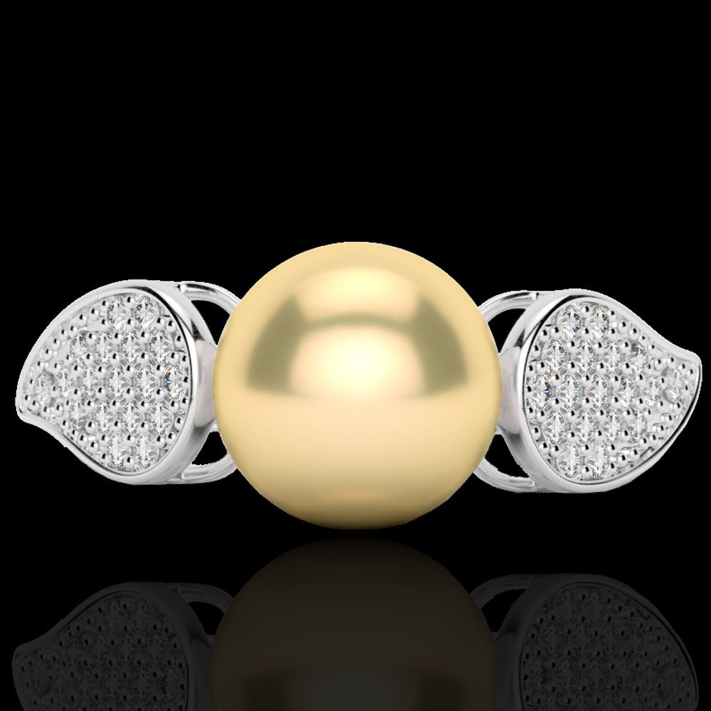 REF-38M2G - SKU: 22639 ---- 0.27 ctw Micro Pave VS/SI Diamond & Golden Pearl Ring 18k White Gold