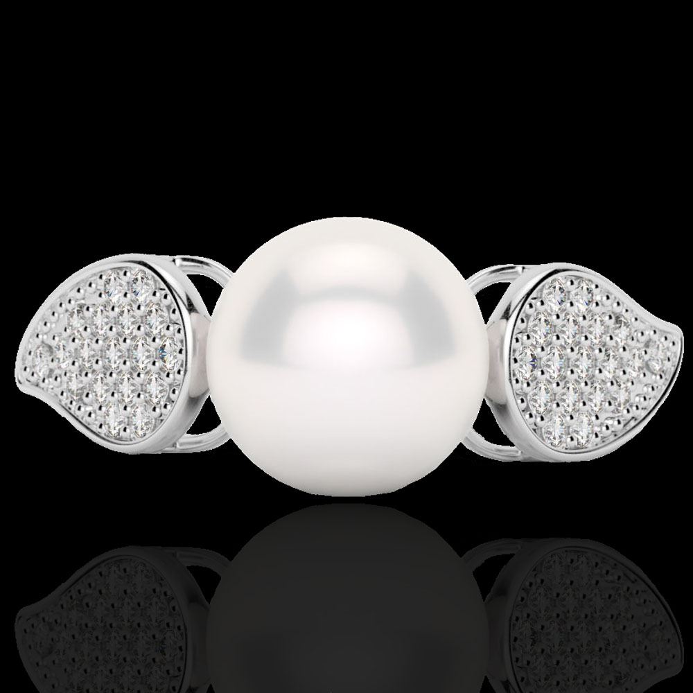 REF-38F2M - SKU: 22643 ---- 0.27 ctw Micro Pave VS/SI Diamond & Pearl Designer Ring 18k White Gold