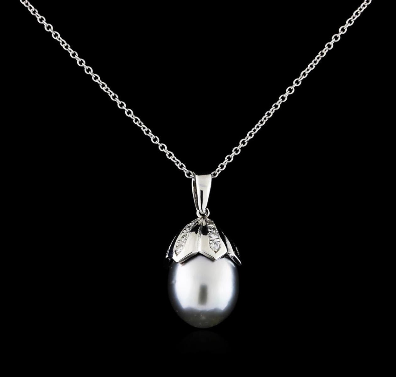 One pendant with chain featuring: 14KT white gold weighing 2.40 grams containing one pearl and diamonds with a total weight of 0.27ct.