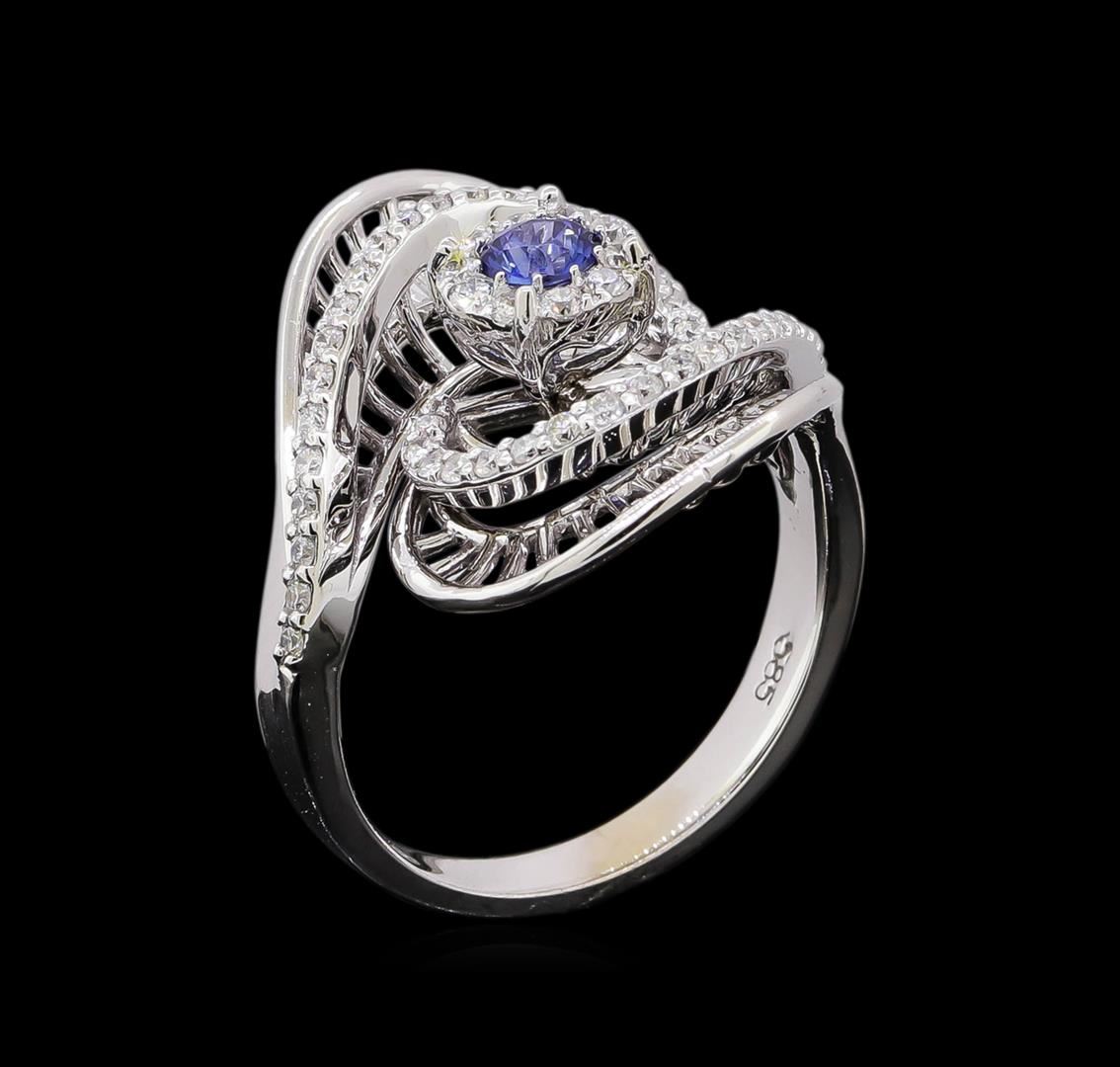 One ring : 14KT white gold weighing 6.24gm containing one sapphire stone with a total weight of 0.27ct. and diamonds weighing 0.50ctw.
