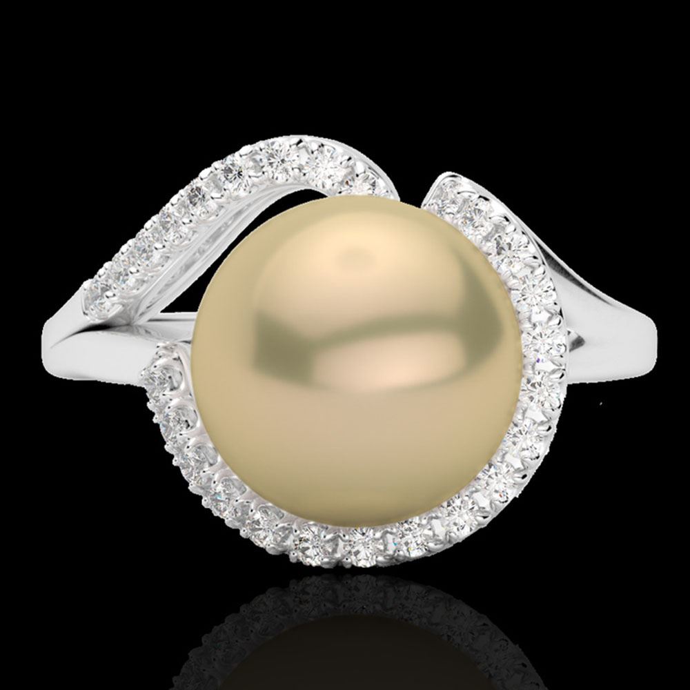REF-39H3R - SKU: 22618 ---- 0.27 ctw VS/SI Diamond & Pearl Designer Ring 18k White Gold