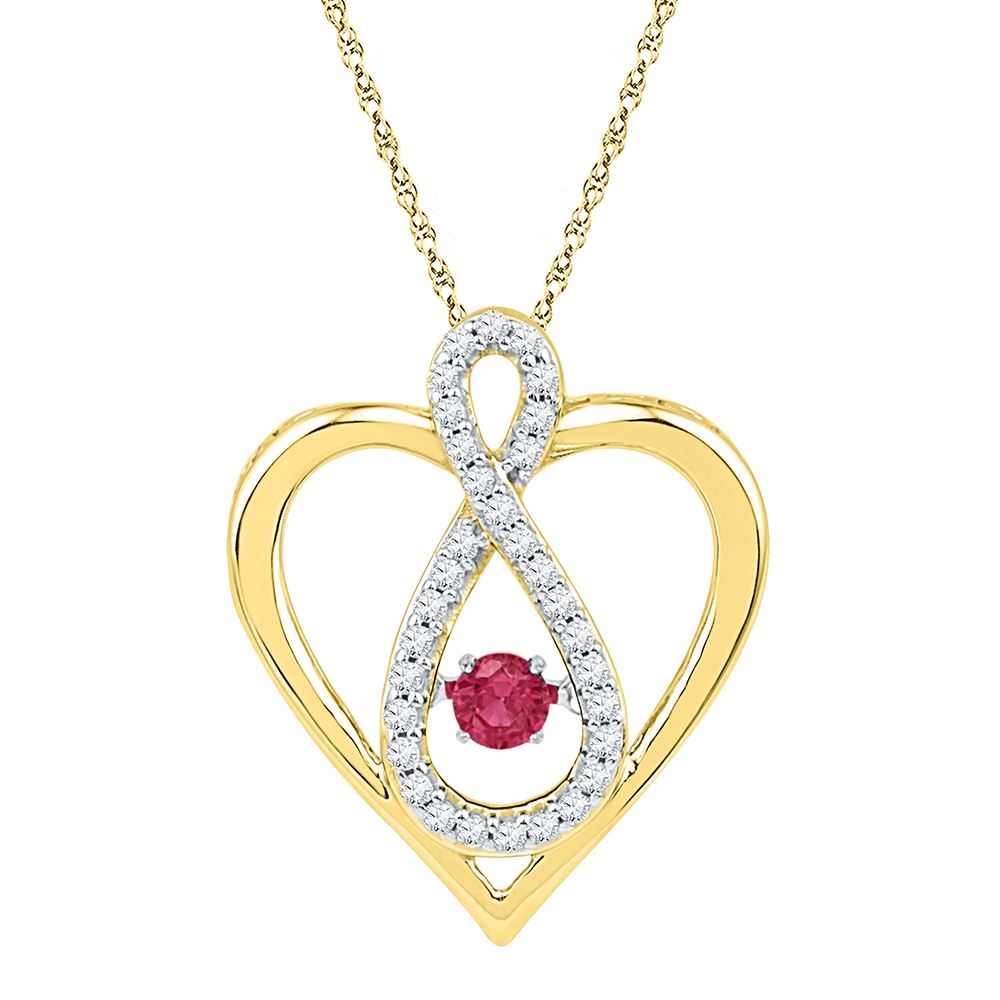 REF-19M4H- SKU: GD101390 ---- 0.28 CTW Created Ruby Diamond Infinity Heart Pendant 10KT Yellow Gold
