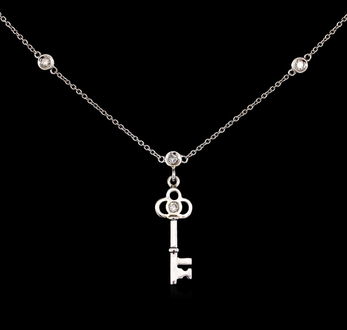One key pendant with chain featuring: 14KT white gold weighing 3.84 grams containing diamonds with a total weight of 0.28ct.