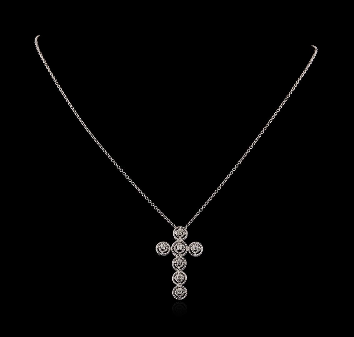 One pendant with chain featuring: 14KT white gold weighing 3.32 grams containing diamonds with a total weight of 0.28ct.