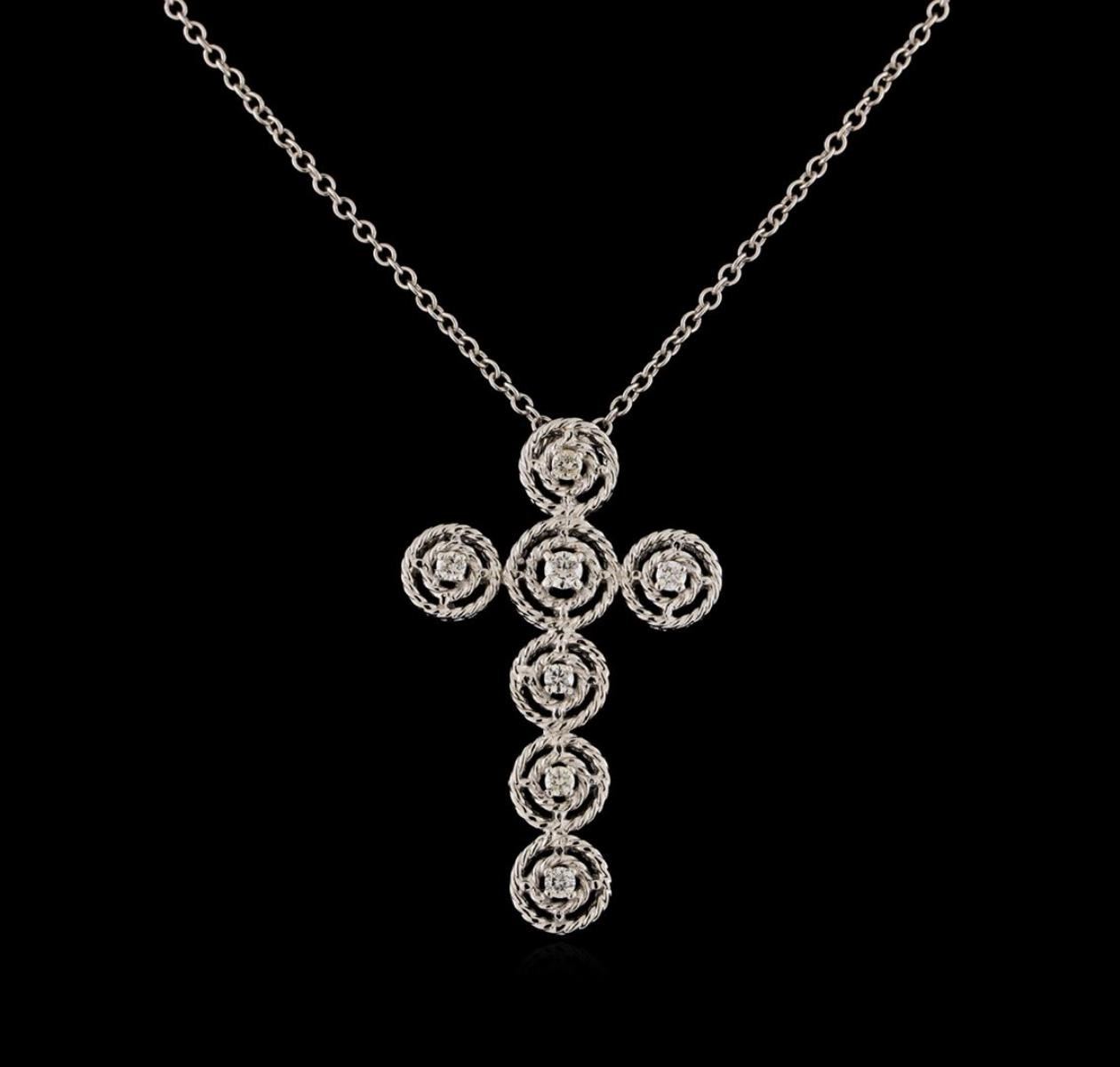 One pendant with chain featuring: 14KT white gold weighing 3.32 grams containing diamonds with a total weight of 0.28ct.