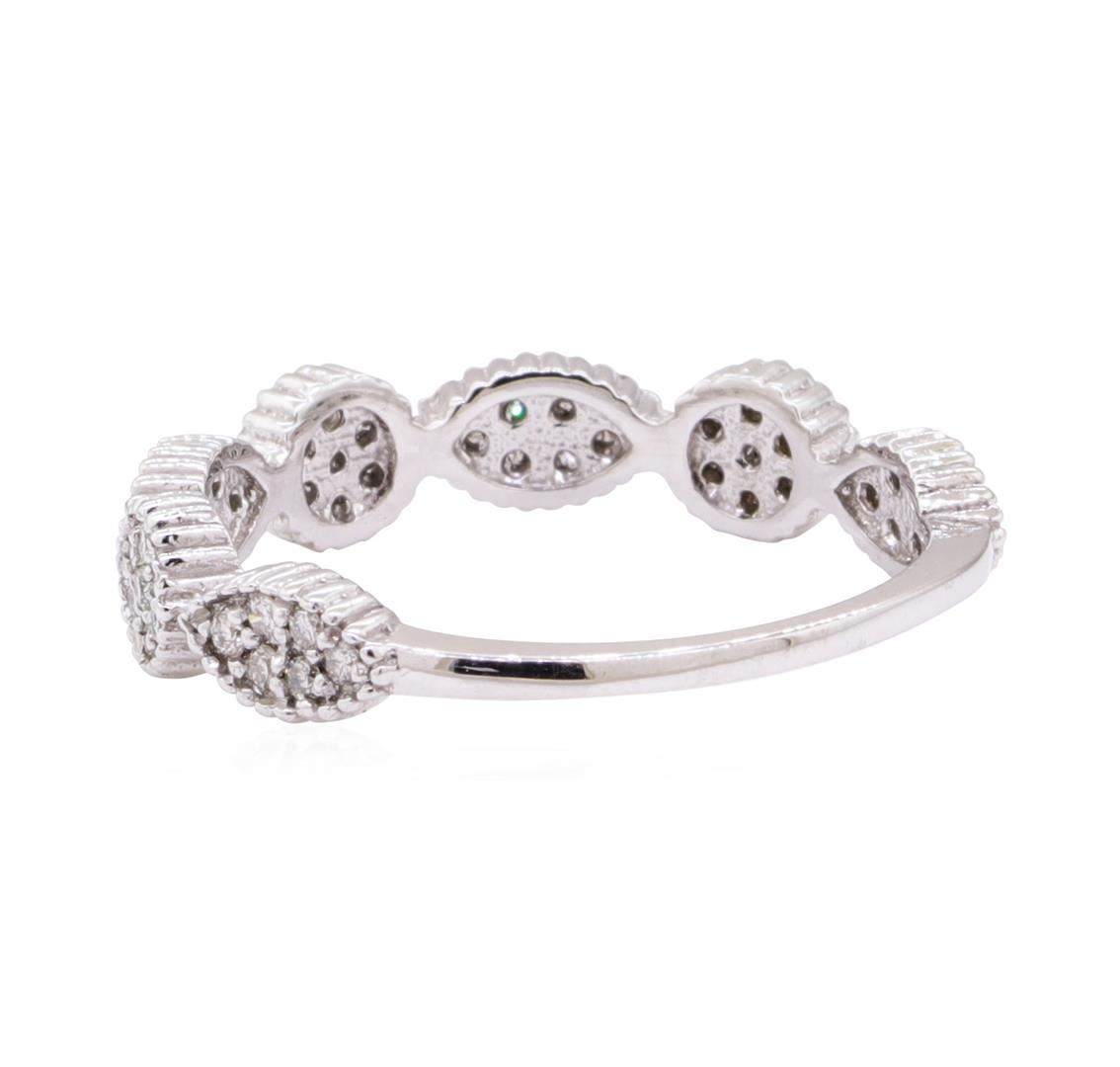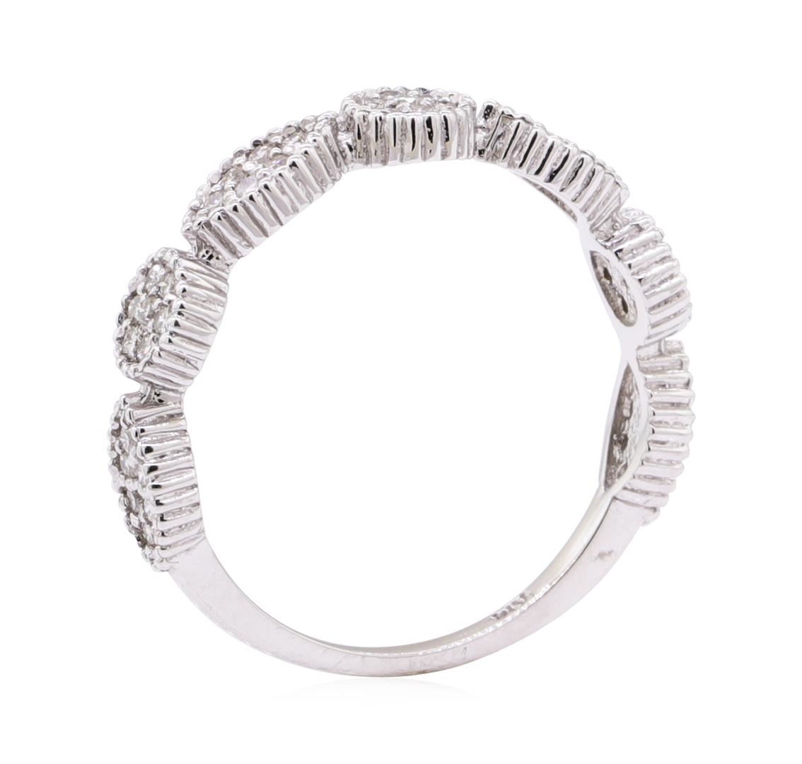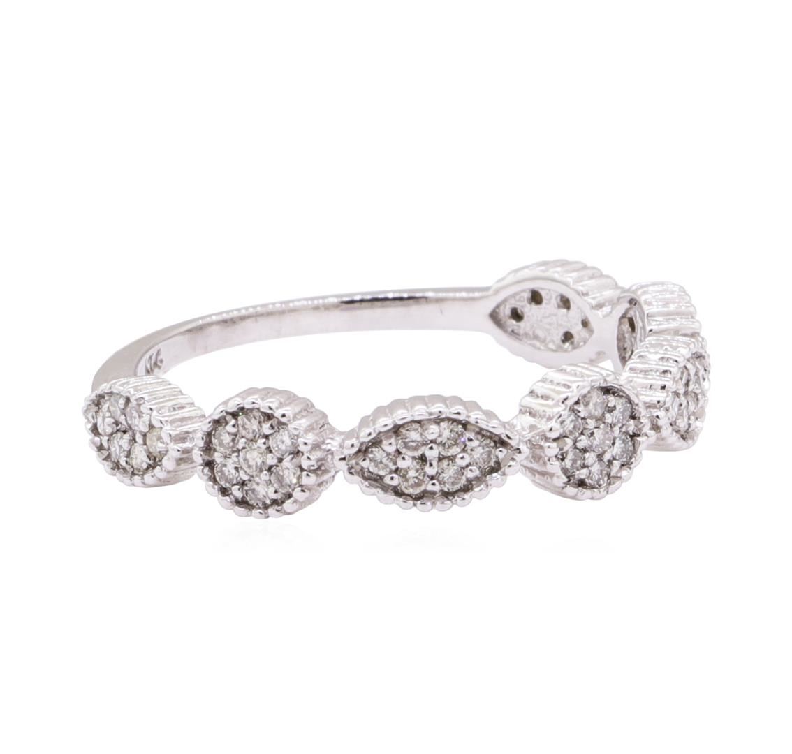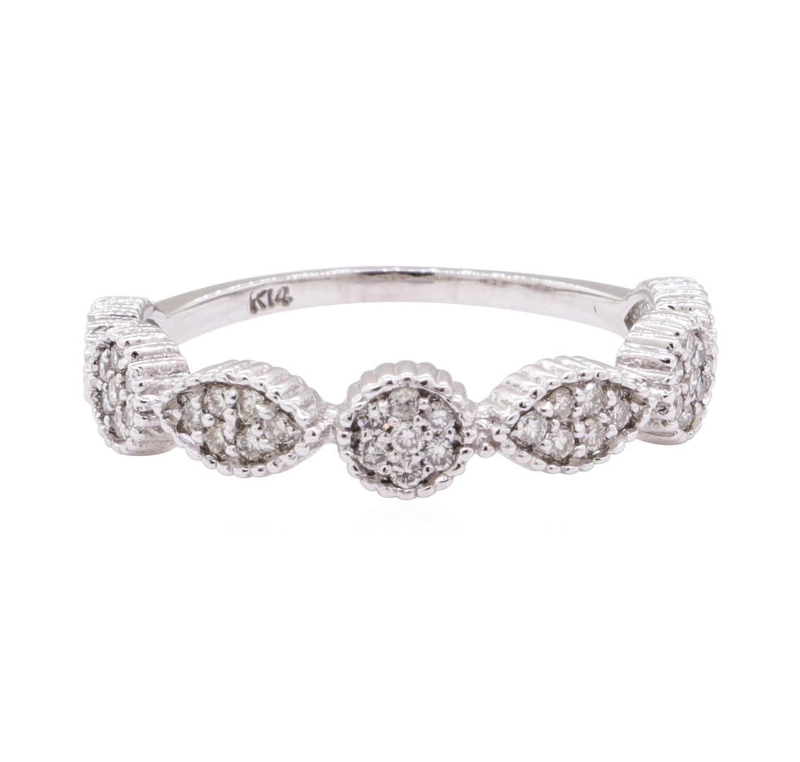 One lady's ring featuring: 14KT white gold weighing 2.3 grams containing diamonds weighing 0.28ctw. The ring has a scalloped motif with milgrain detailing.