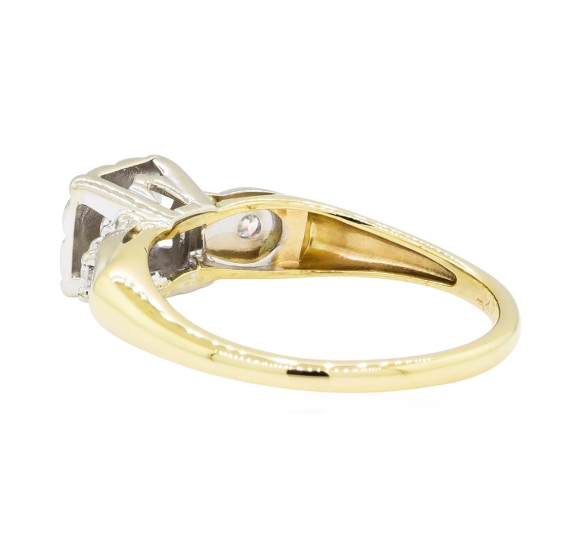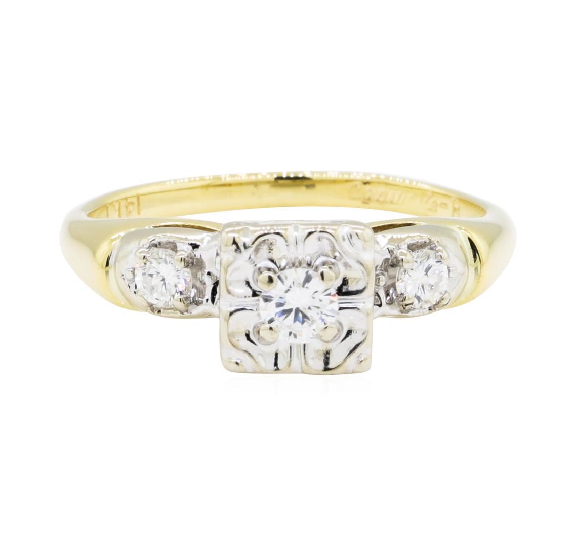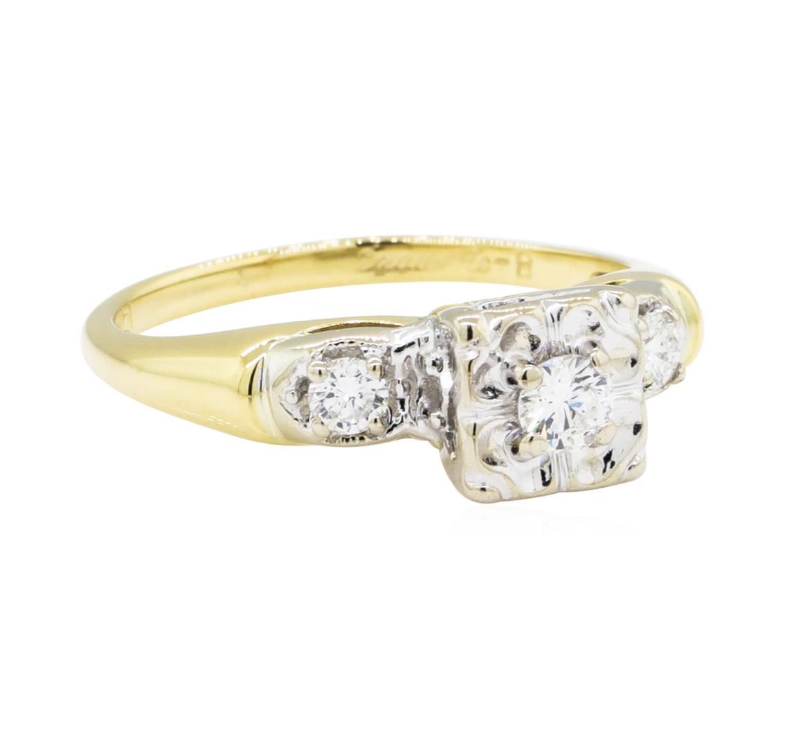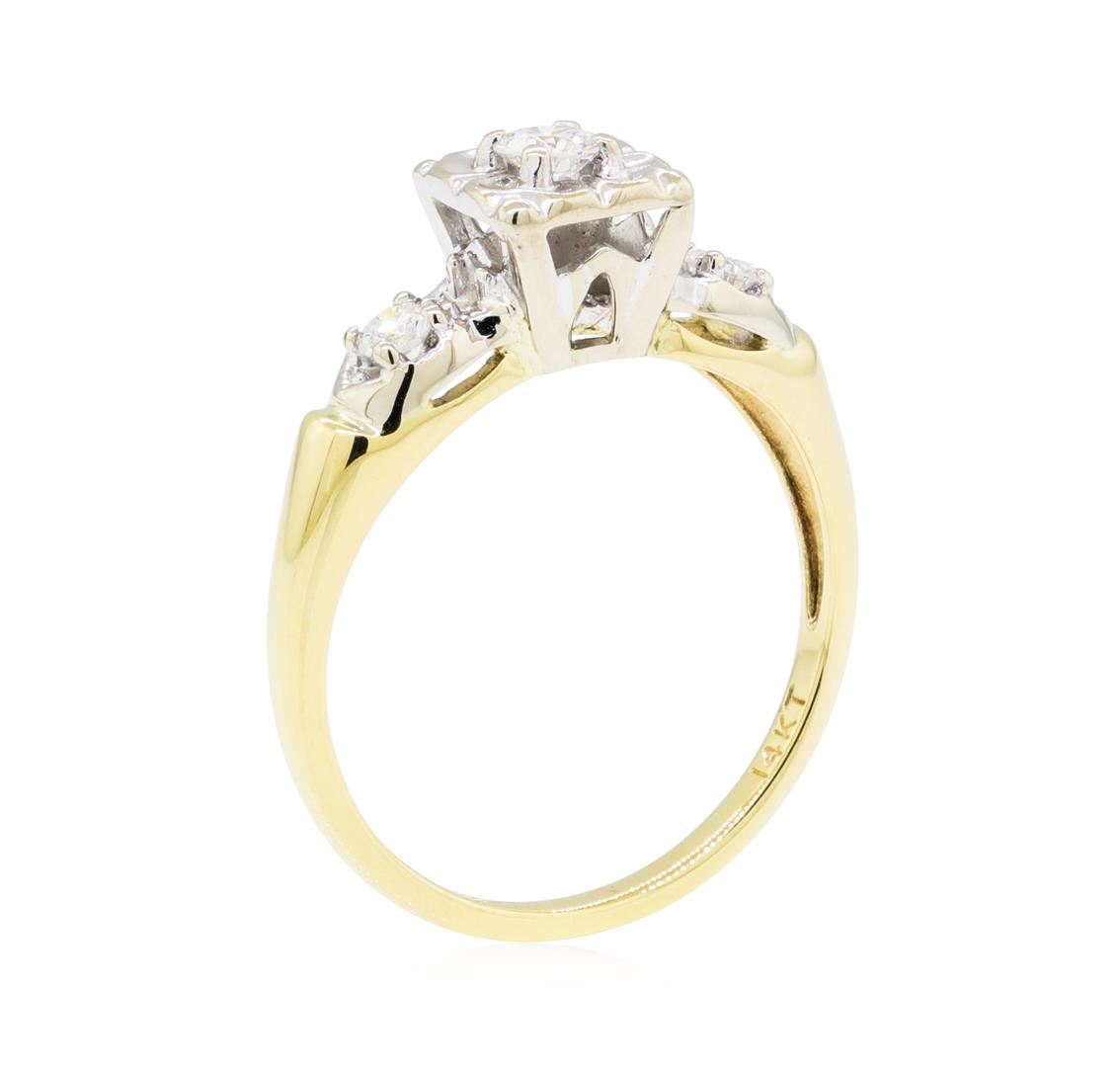 One lady's ring featuring: 14KT yellow gold with rhodium plating weighing 2.7 grams containing diamonds weighing 0.28ctw.