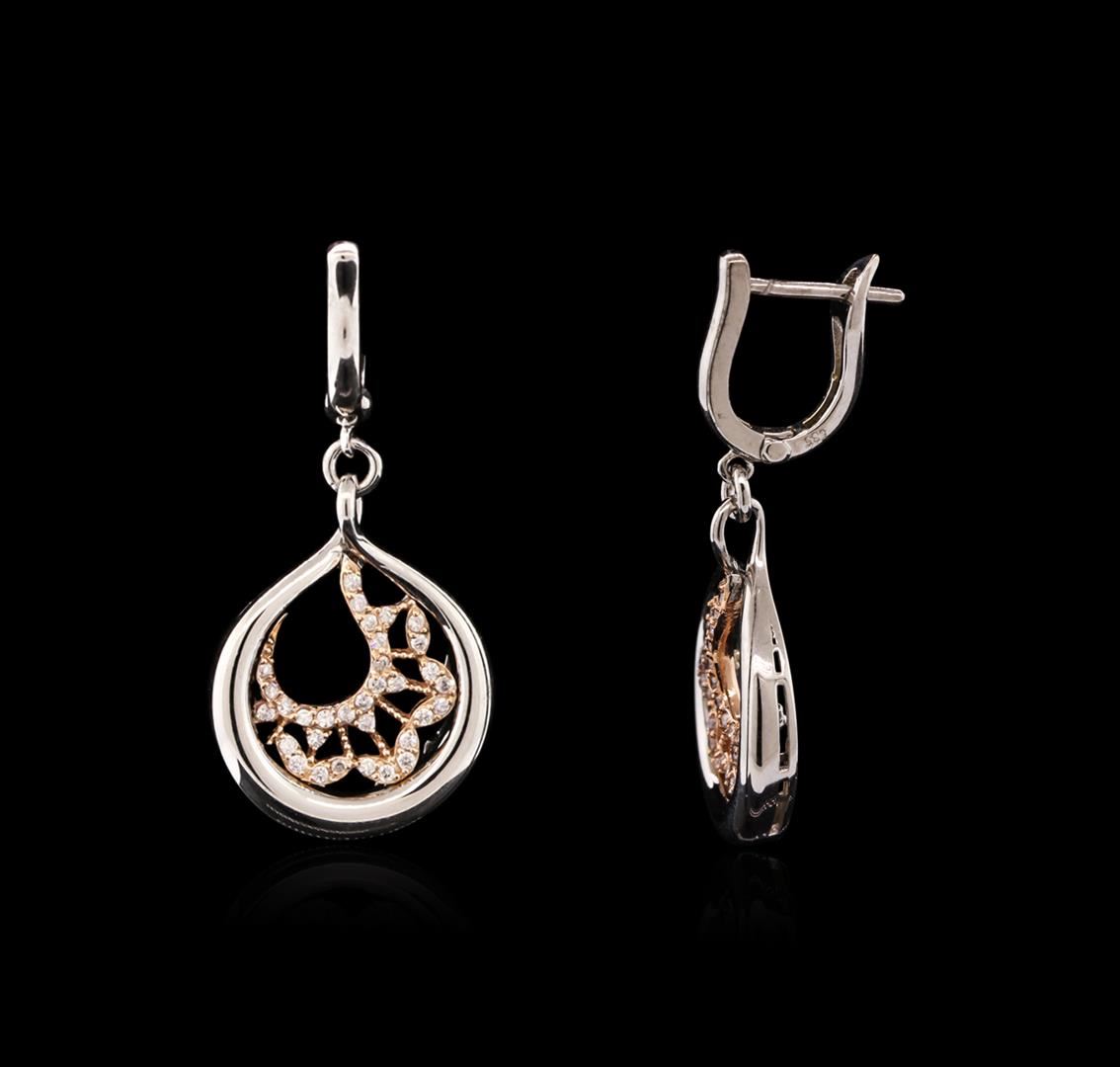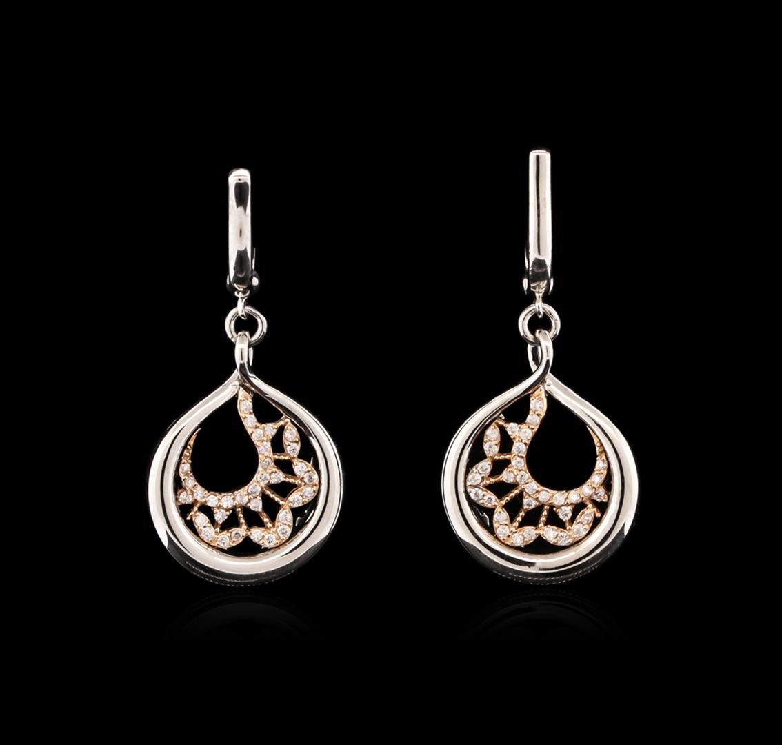 One pair of earrings featuring: 14KT white and rose gold weighing 7.04 grams containing 64 diamonds with a total weight of 0.28ct.