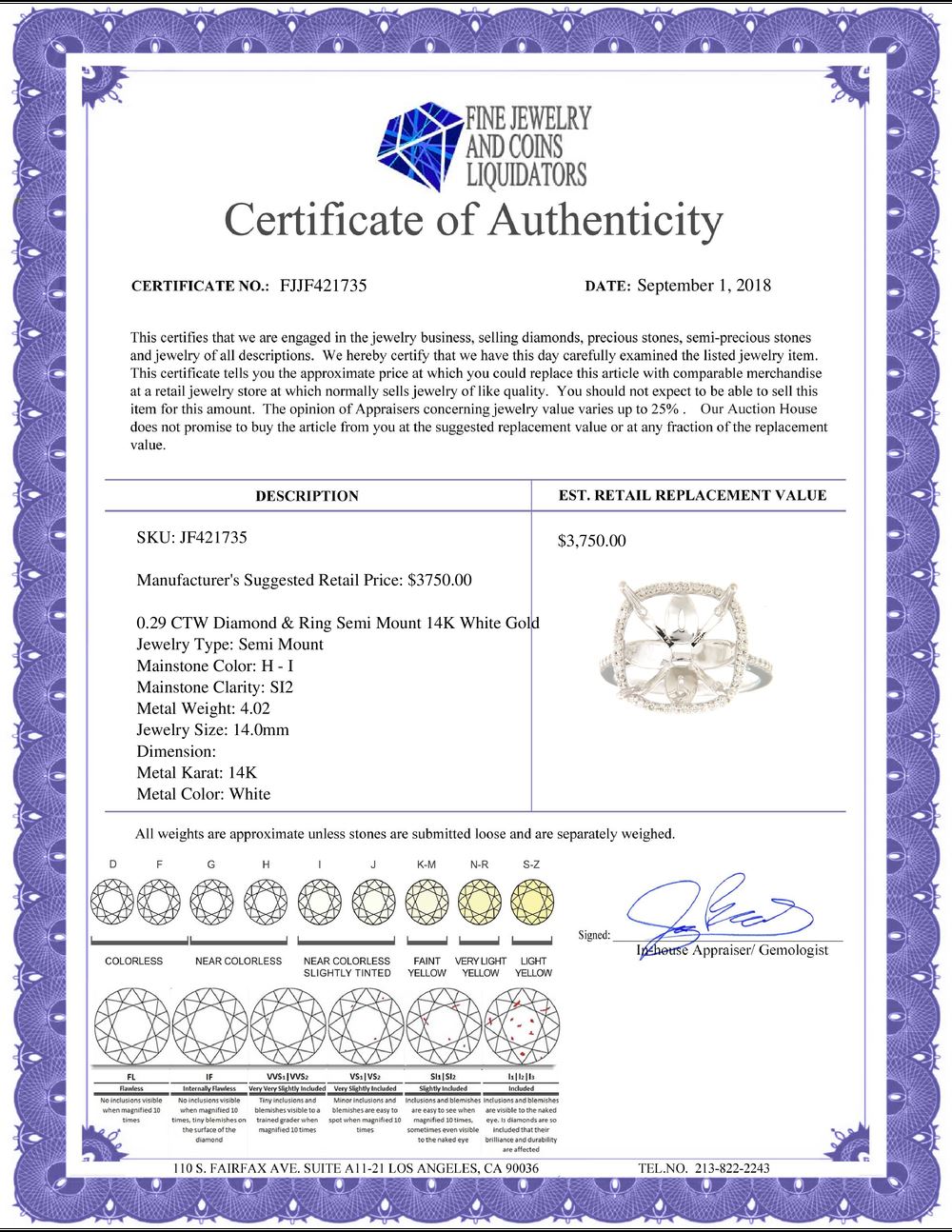 REF-49F2N - JF421735 ---- 0.29 CTW White Round Diamond Semi Mount Ring 14K White Gold