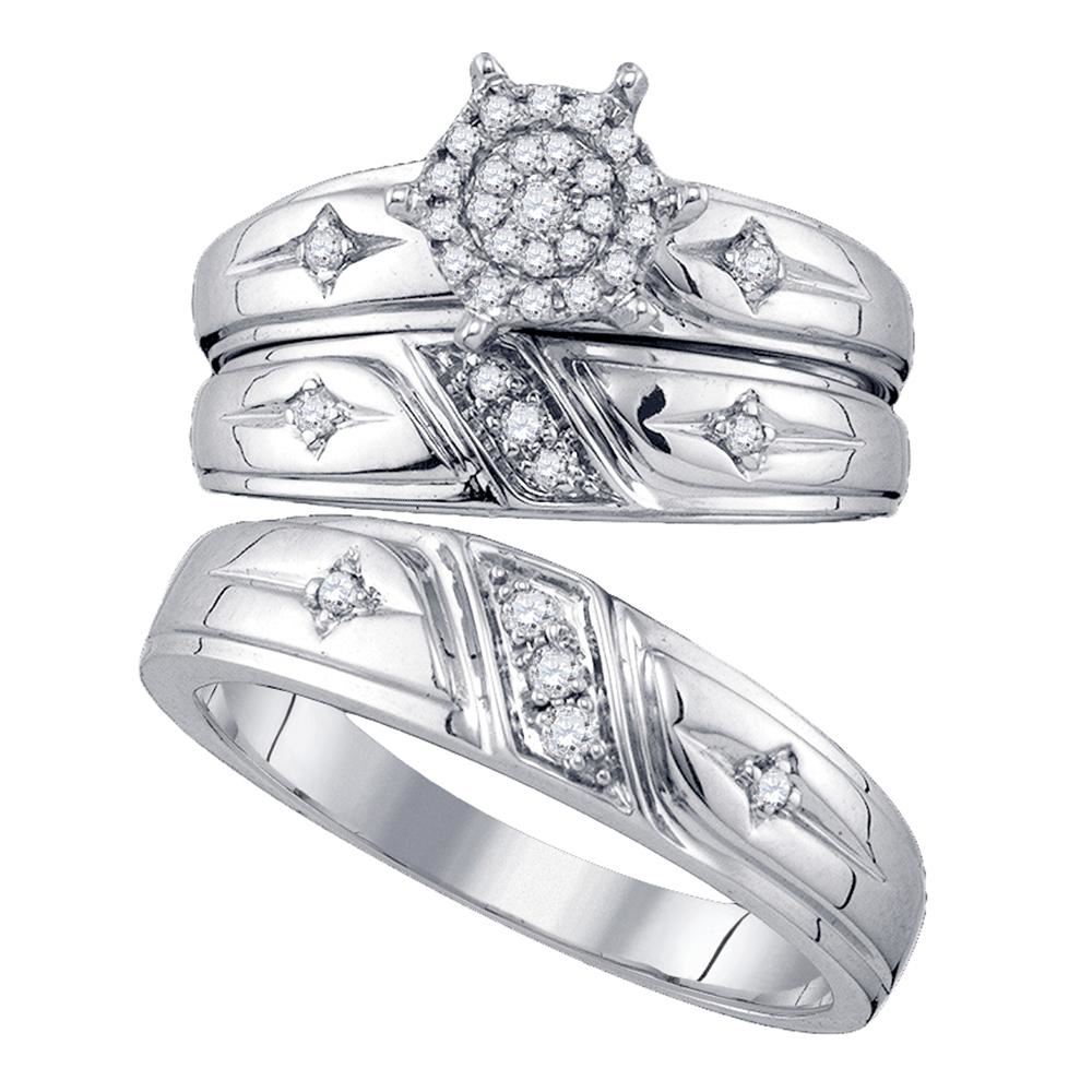 REF-52M4H- SKU: GD80089 ---- 0.29 CTW His & Hers Diamond Cross Cluster Matching Bridal Ring 10KT White Gold