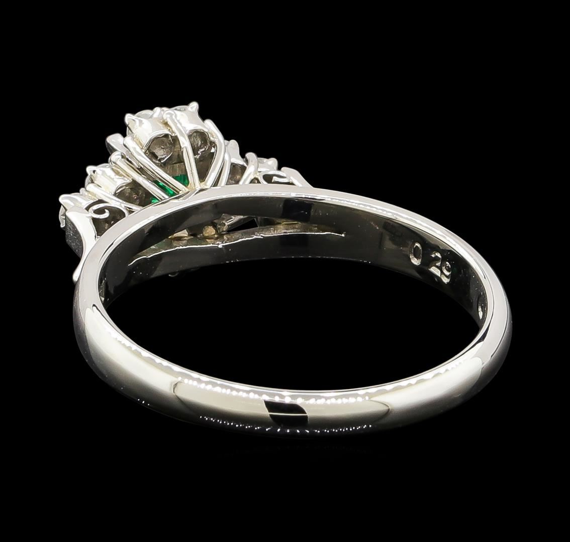 One ring featuring: Platinum containing Emerald with a total weight of 0.29ct and Diamonds with a total weight of 0.16ct. Total Weight of Ring: 4.3 grams.