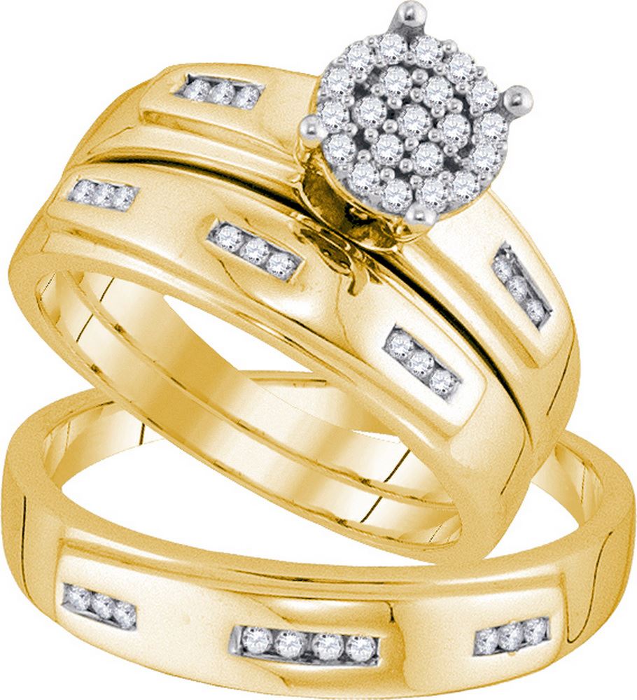 REF-55A3N ---- 0.3 CTW His & Hers Natural Diamond Cluster Matching Bridal Ring 10K Yellow Gold - SKU: GD92273
