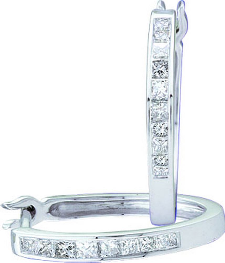 REF-59X8F ---- 0.3 CTW Princess Natural Diamond Channel-set Snap-down Hoop Earrings 14K White Gold - SKU: GD15367