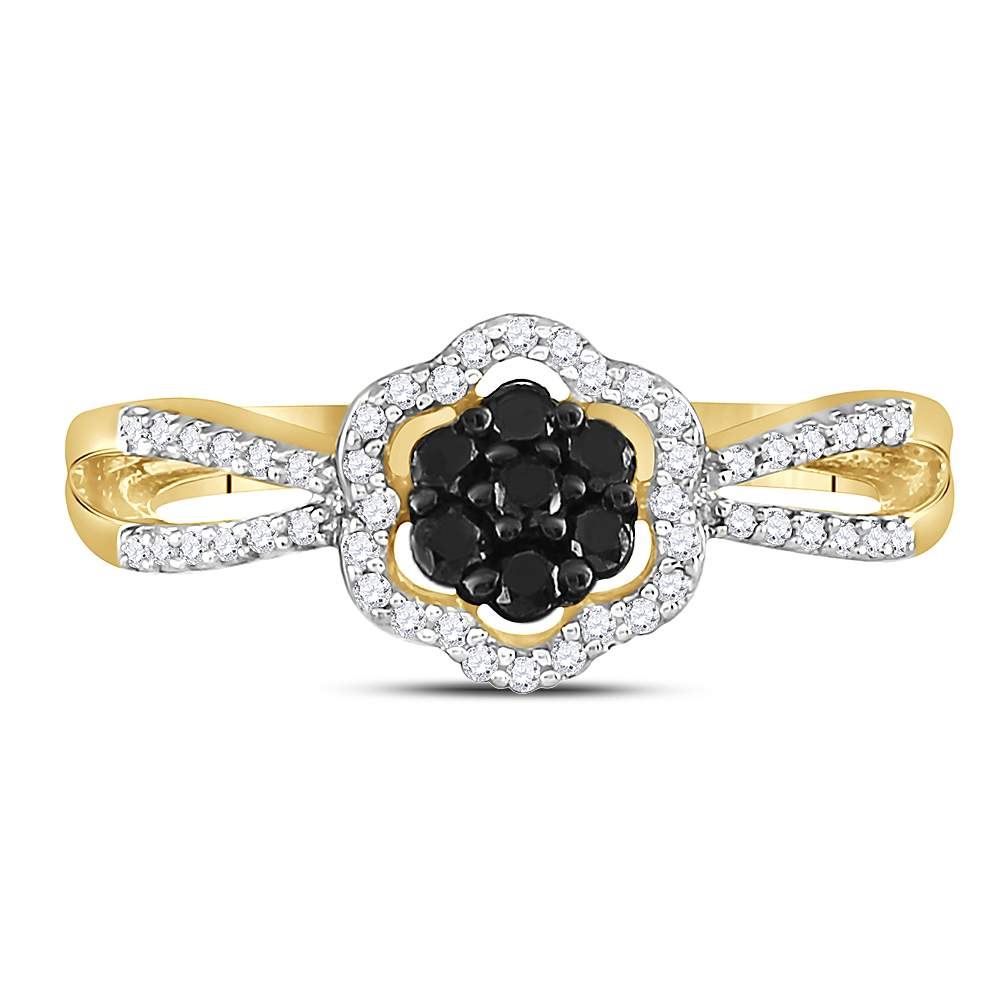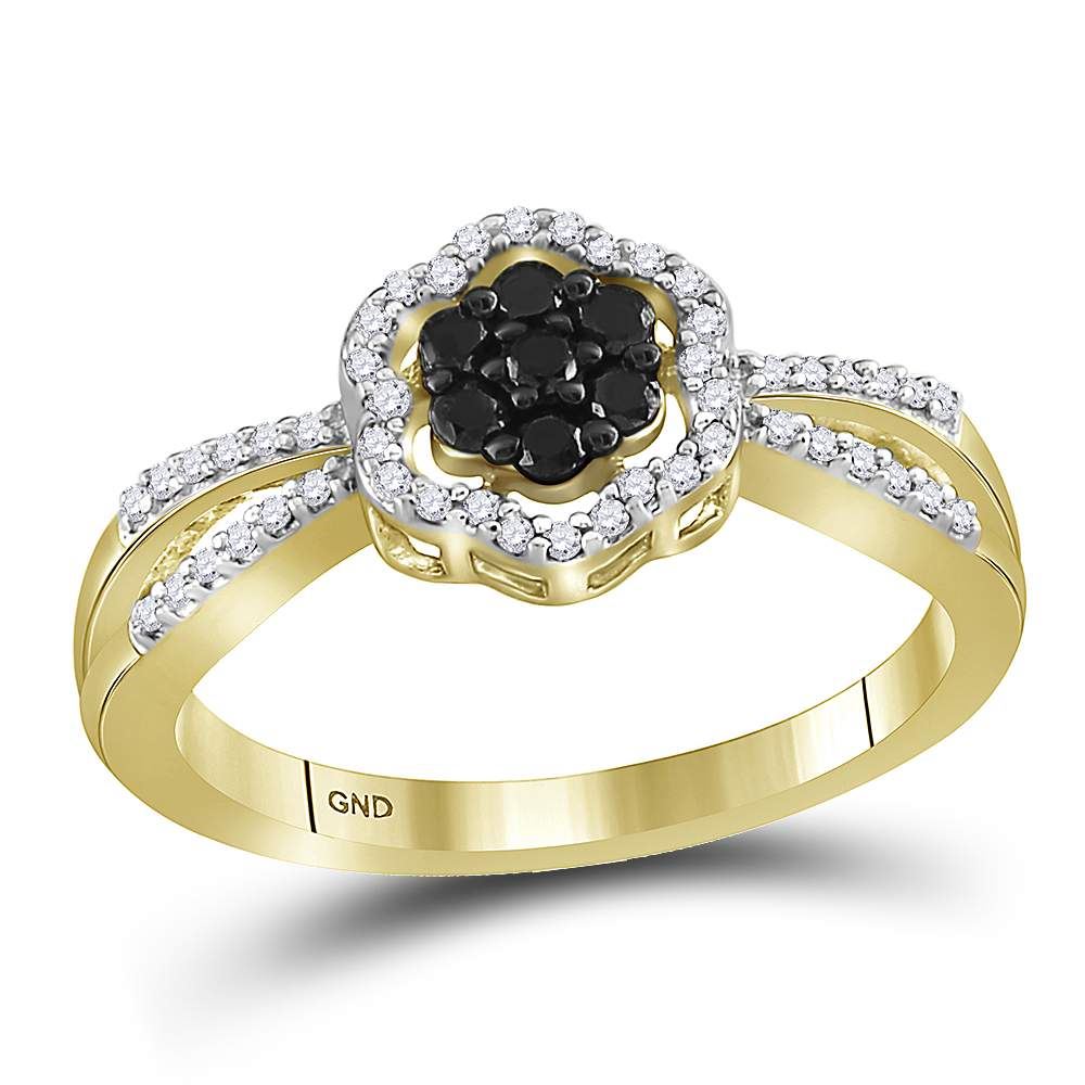 REF-22Y4X- SKU: GD58728 ---- 0.30 CTW Black Color Diamond Flower Cluster Ring 10KT Yellow Gold