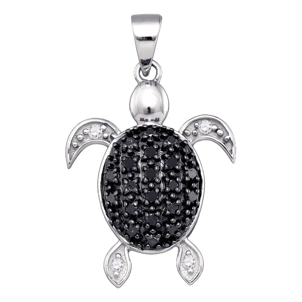 REF-14X9Y- SKU: GD61817 ---- 0.30 CTW Black Color Diamond Turtle Tortoise Shell Pendant 10KT White Gold