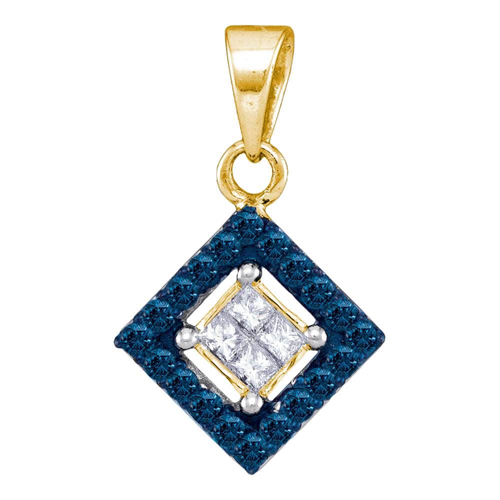 REF-18Y2X- SKU: GD89100 ---- 0.30 CTW Blue Color Diamond Diagonal Square Pendant 10KT Yellow Gold