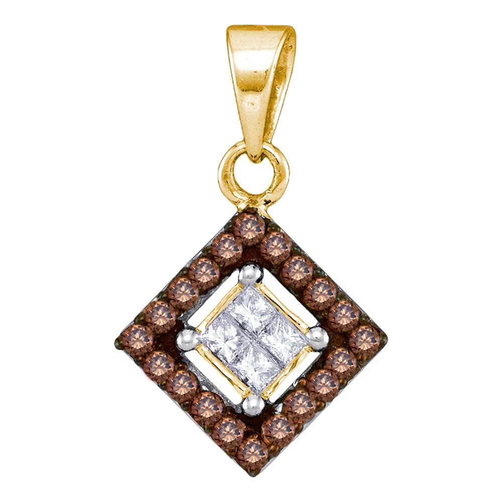 REF-16F4N- SKU: GD89098 ---- 0.30 CTW Cognac-brown Color Diamond Diagonal Square Pendant 10KT Yellow Gold