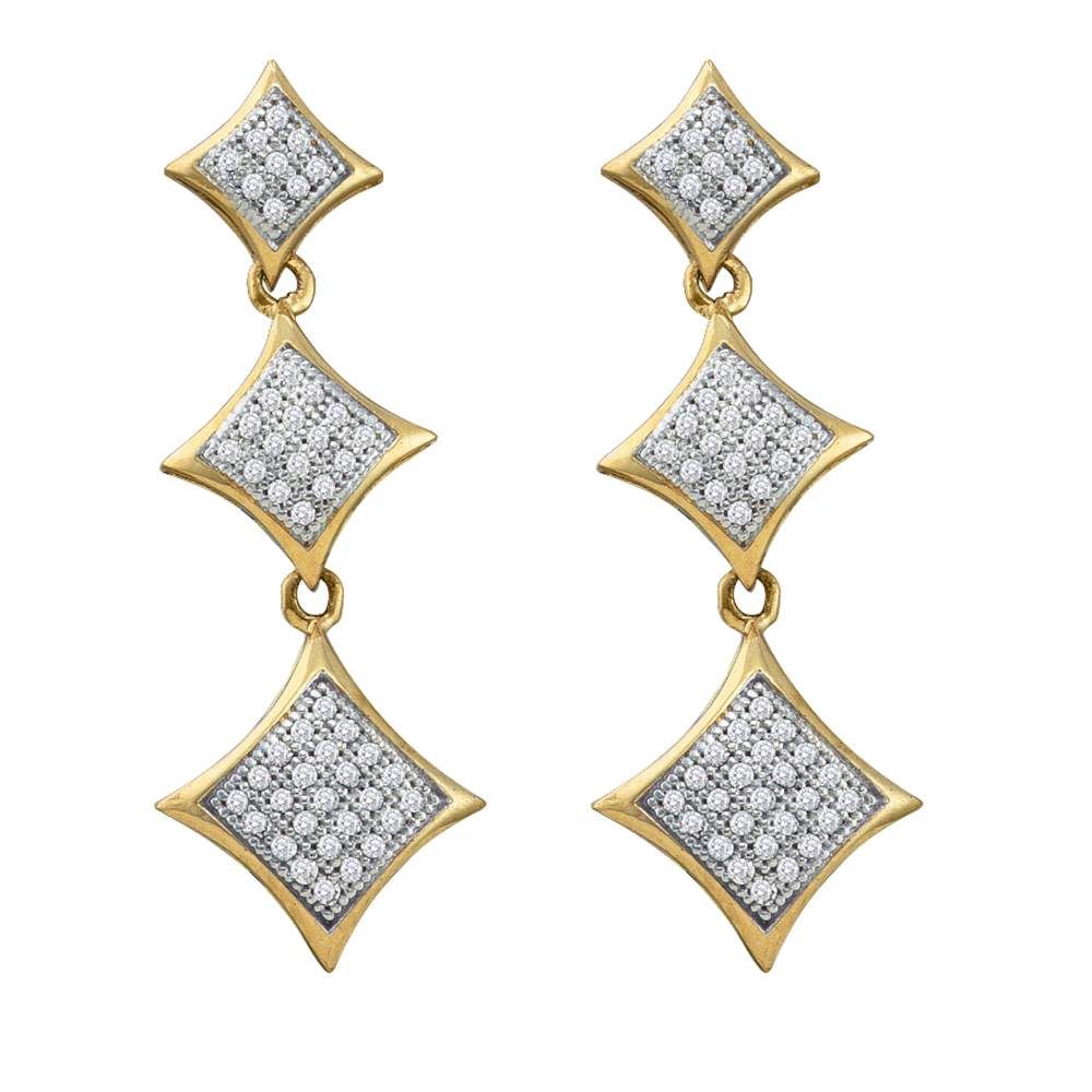 REF-34N4F- SKU: GD55521 ---- 0.30 CTW Diamond Triple Square Kite Dangle Earrings 10KT Yellow Gold